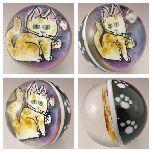 Fishing Cat with Cattails, Butterflies and Fishies Wraparound Marble