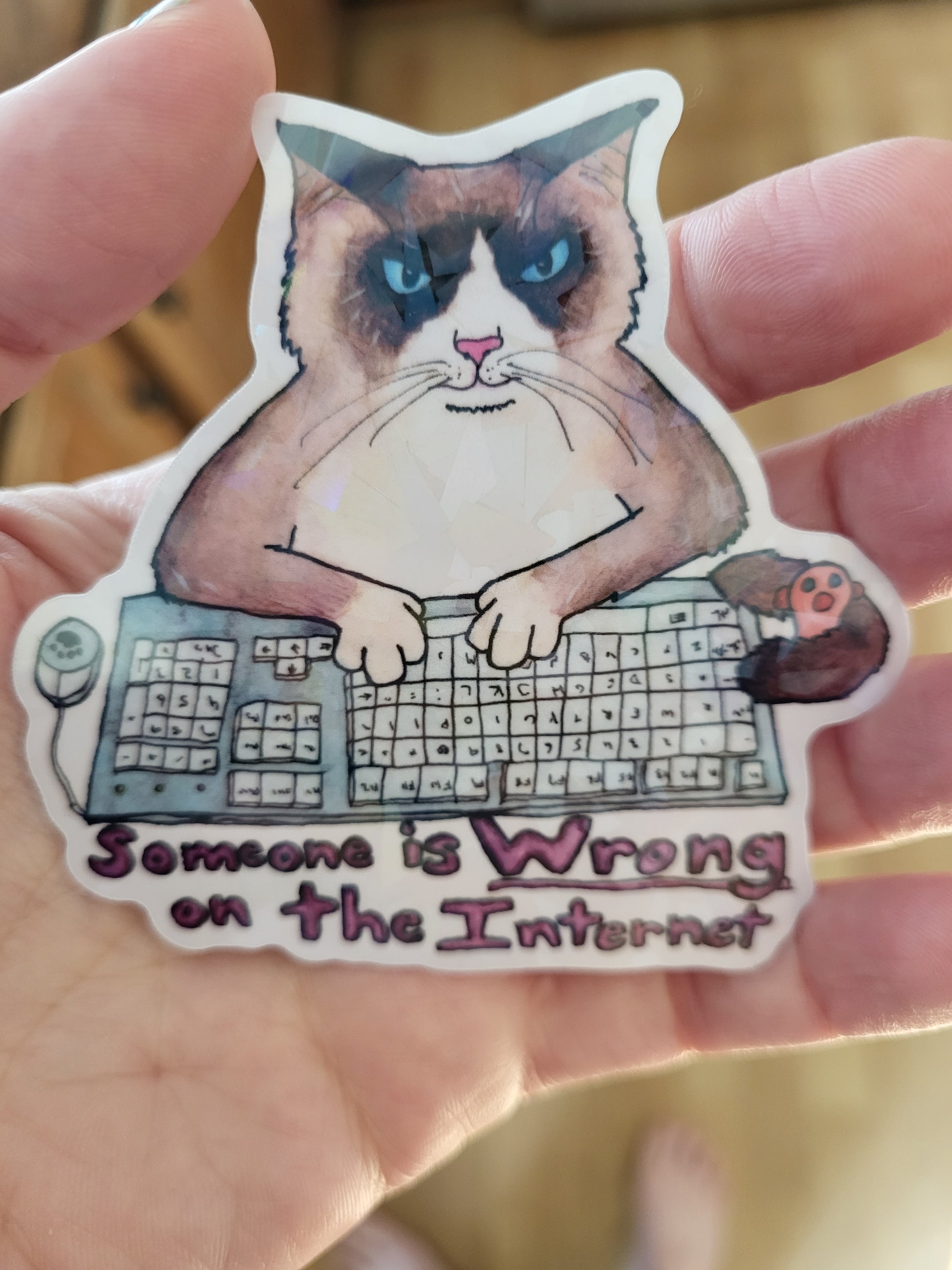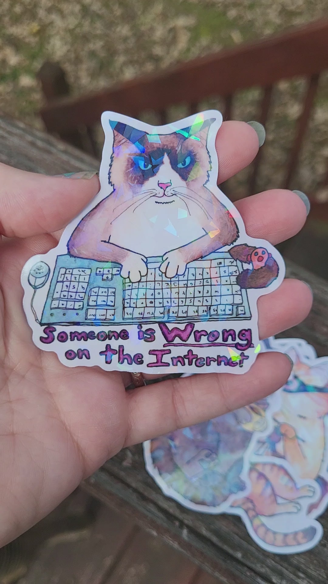 Vinyl sticker with holographic effect created from my art. Stickers will be shipped in a plastic bag in a letter sized envelope. All orders get a freebie sticker included
