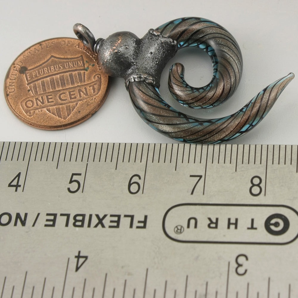 Handmade aqua blue layered over goldstone with black pinstripes twisty Abstract curved focal with Electroforming Oxidized single