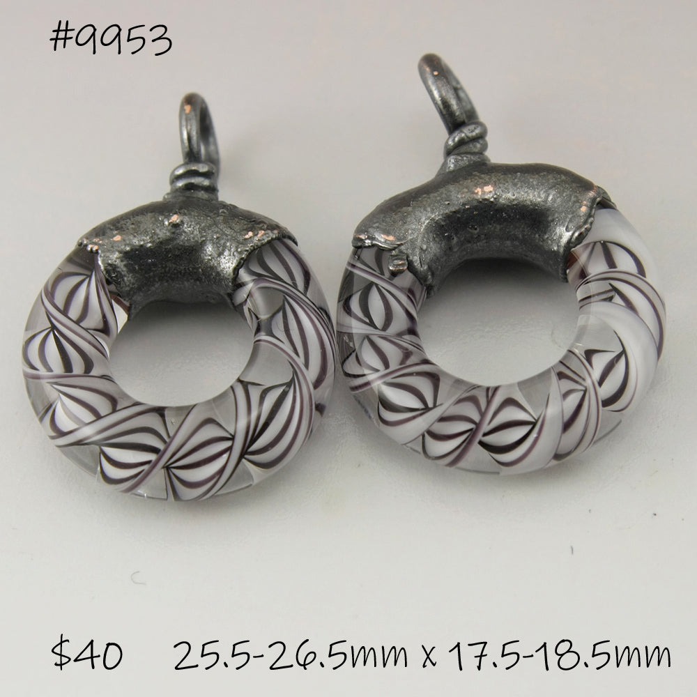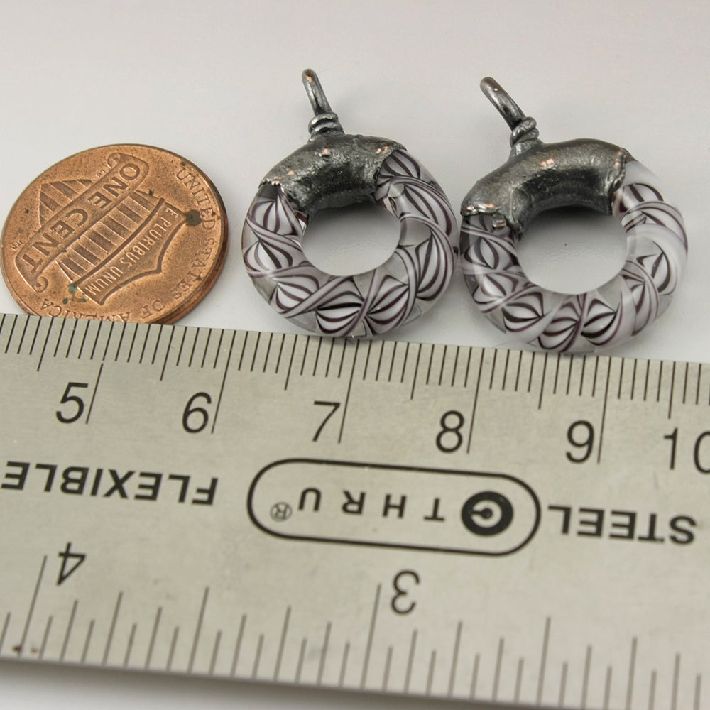 Handmade black and white helix twisty circle loop with Electroforming Oxidized pair