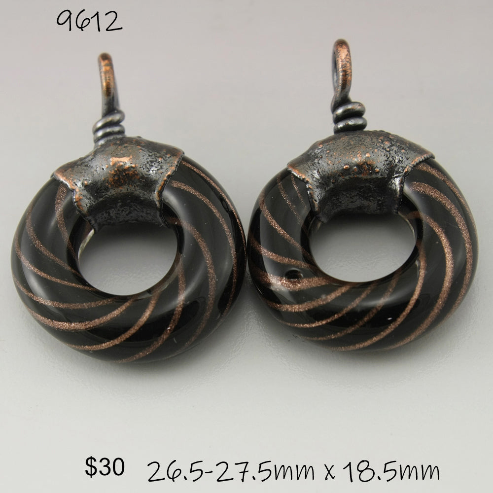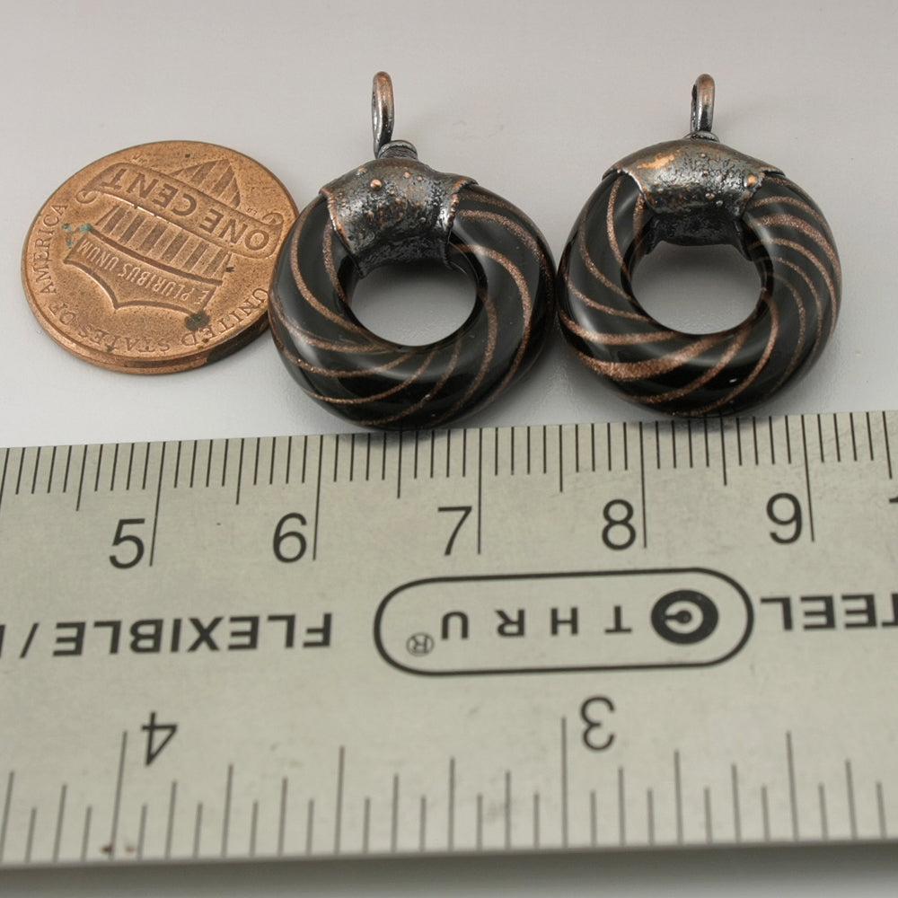 Black Goldstone Twist Circle Pair with Copper Electroforming