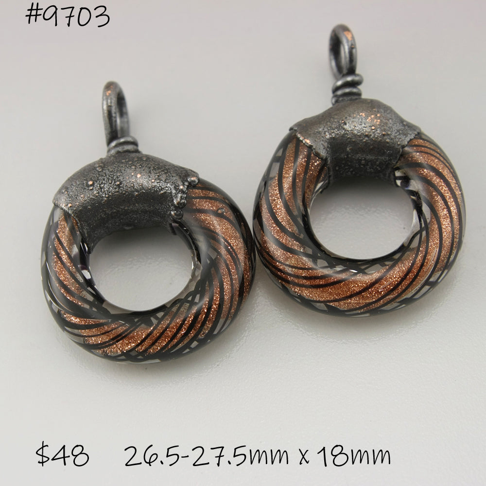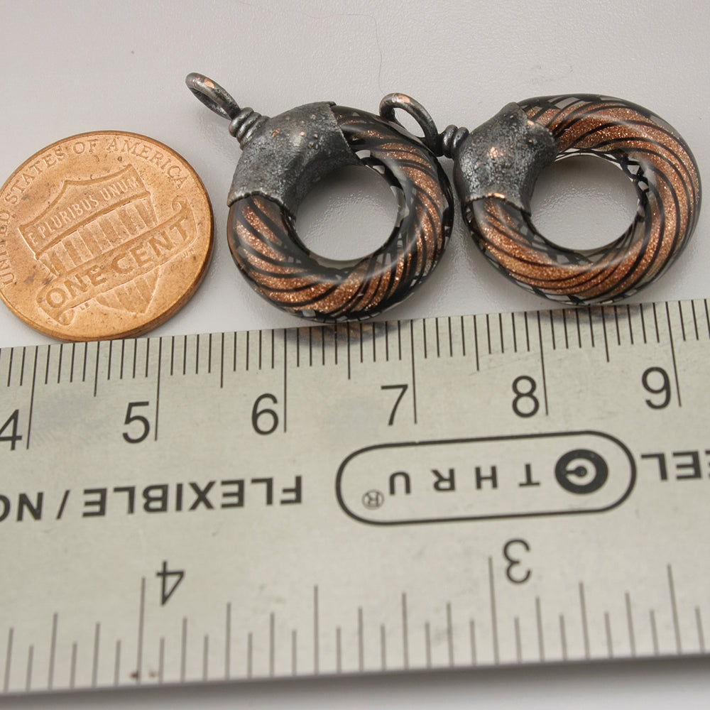 Handmade sparkling goldstone with black pinstripes circle with Electroforming Oxidized pair