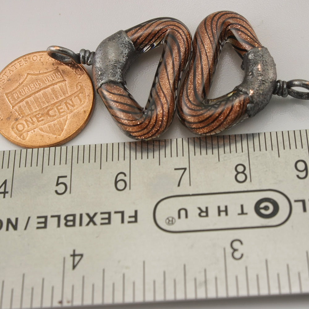 These are made with handmade lampwork glass and copper electroforming. Measurement includes the loop.