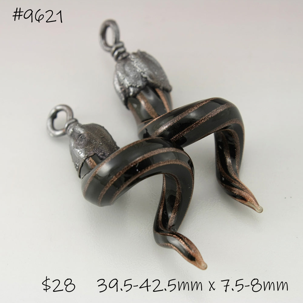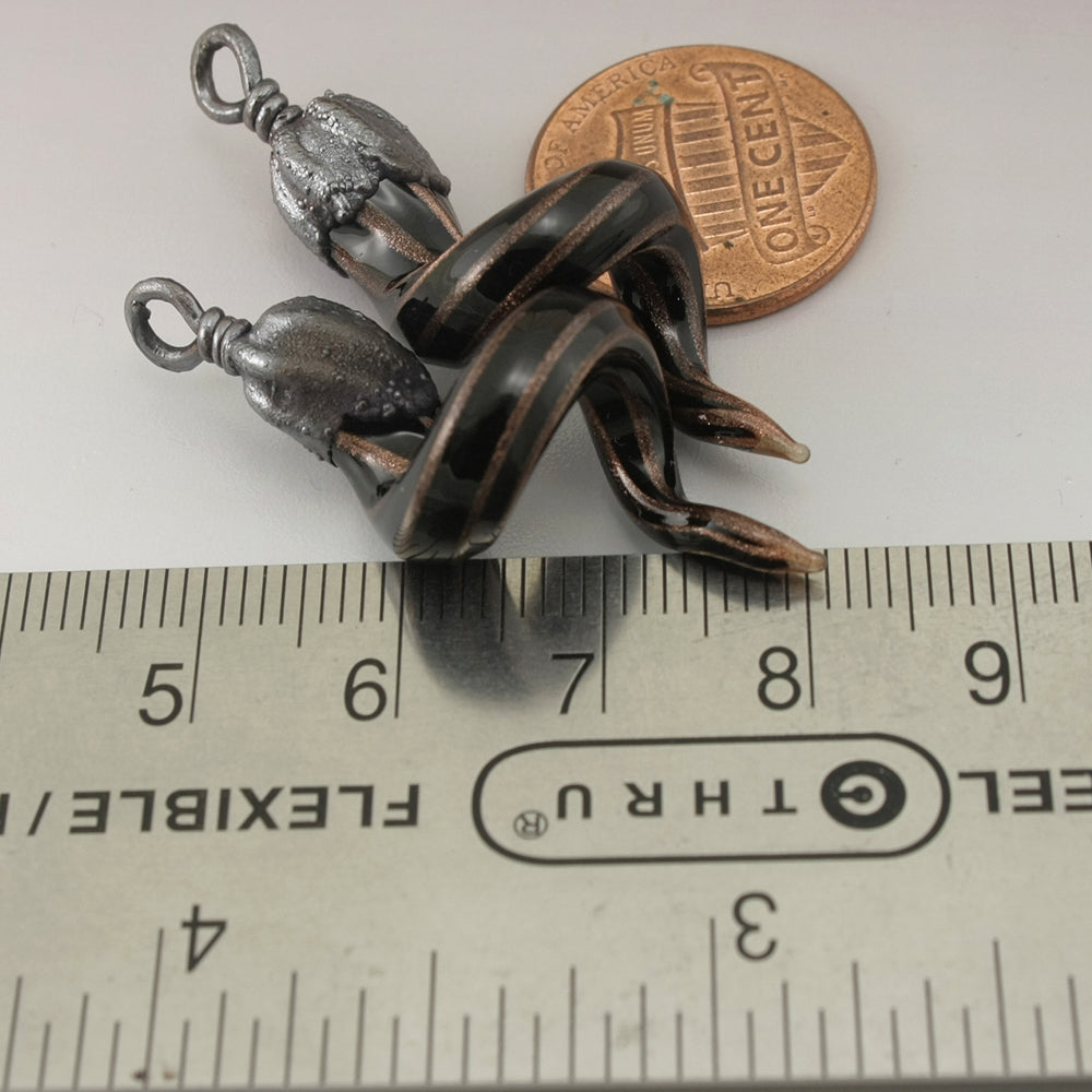 black with Sparkly Goldstone Pinstripes Lampwork Glass Curly Spirals with Copper Electroforming Oxidized pair