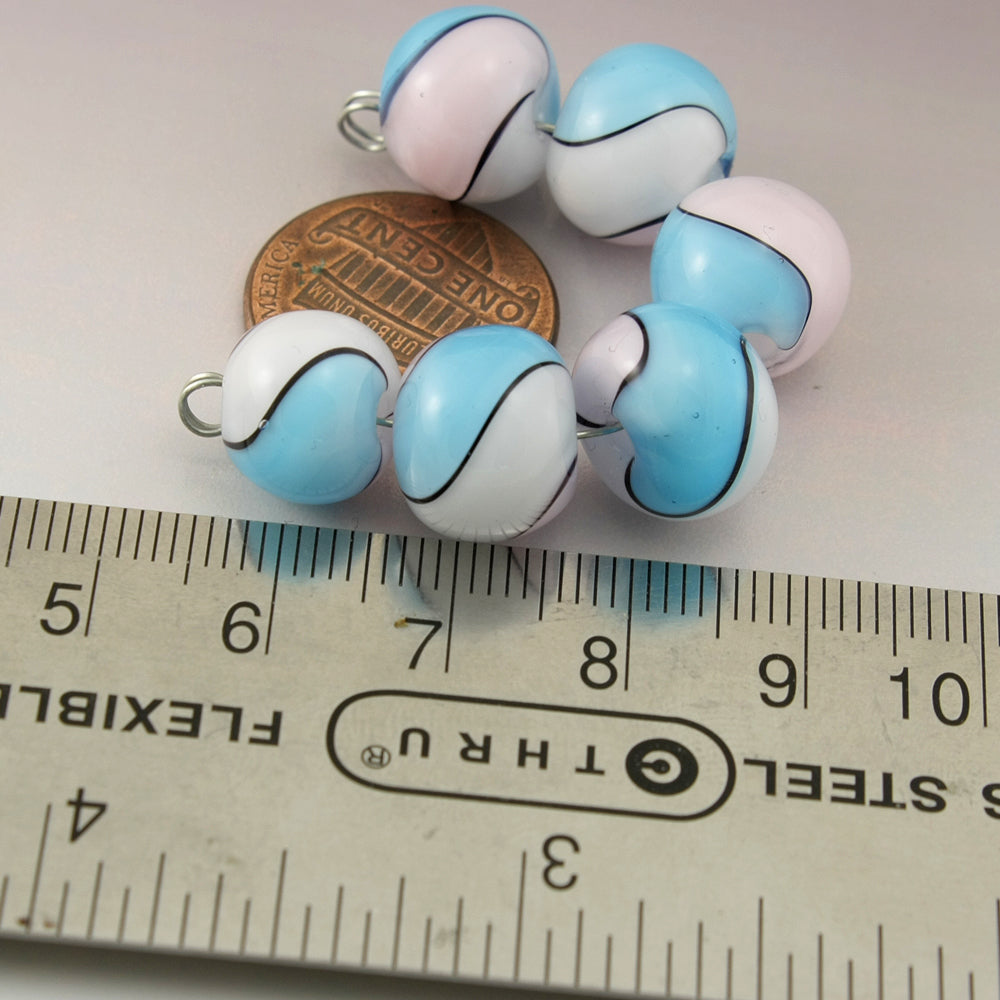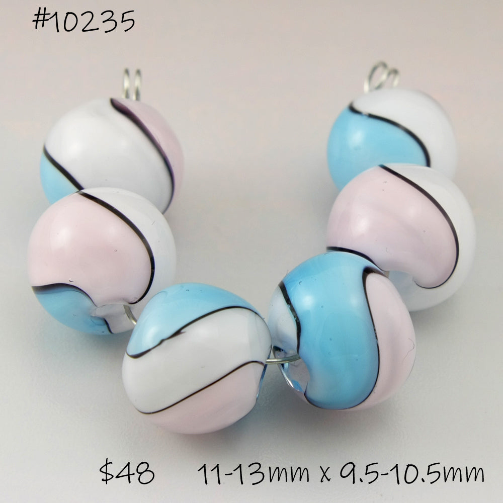 Handmade pale pink, light blue, white with black twistie graduated rounds.