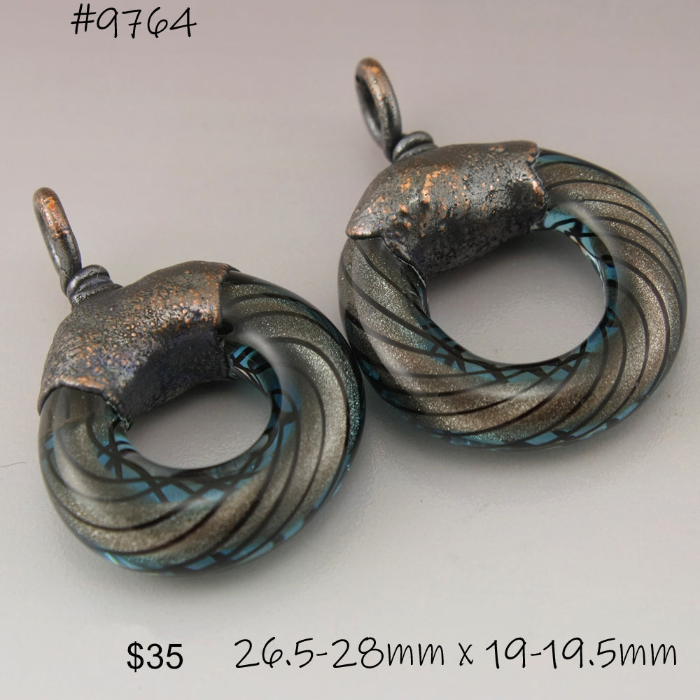 These are made with handmade lampwork glass and copper electroforming. Measurement includes the loop.