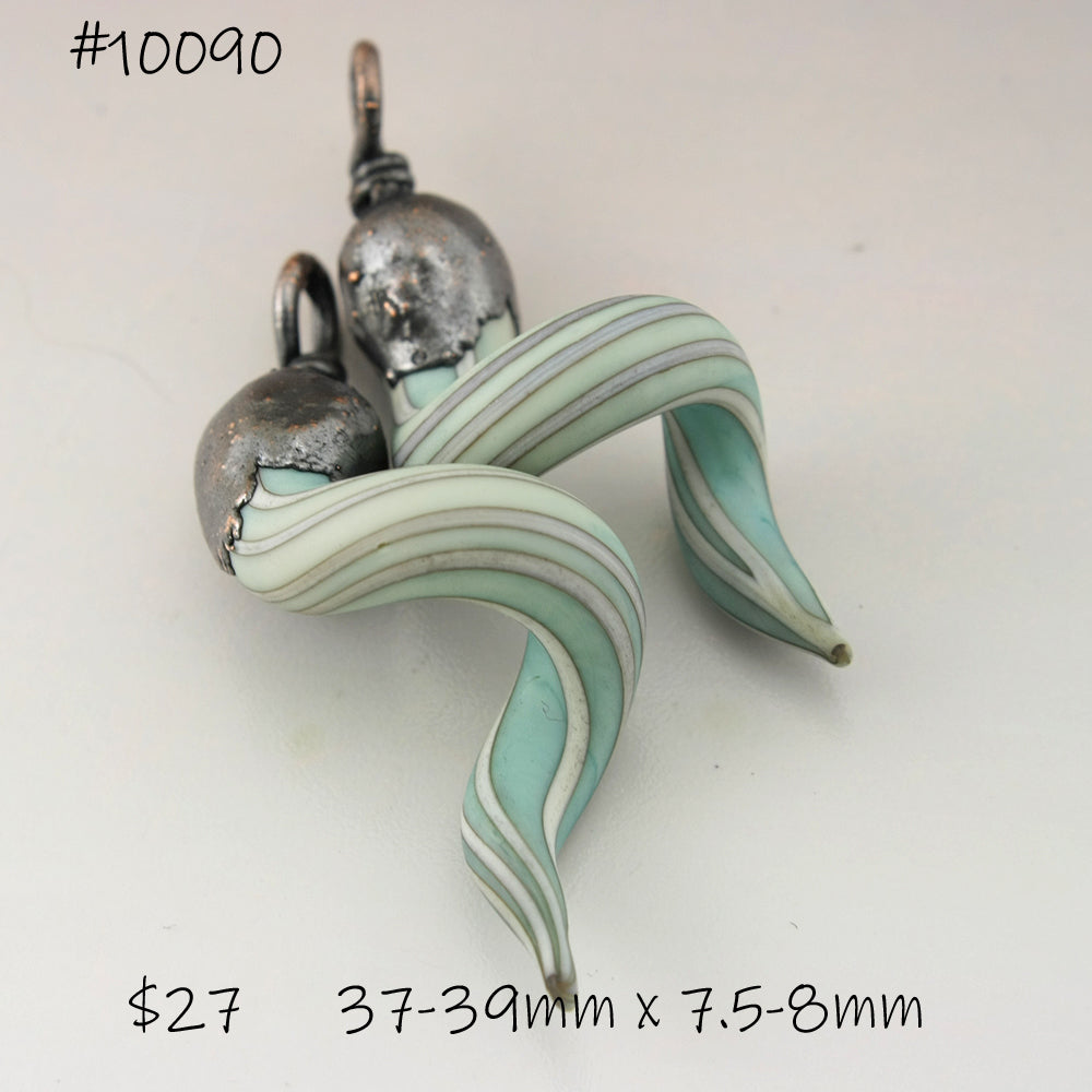 All my lampwork is annealed in a computer controlled kiln for strength and durability. Each piece is made one by one in the flame using glass from Italy, Germany, China and the US These are handmade so there might be a slight variance in size.