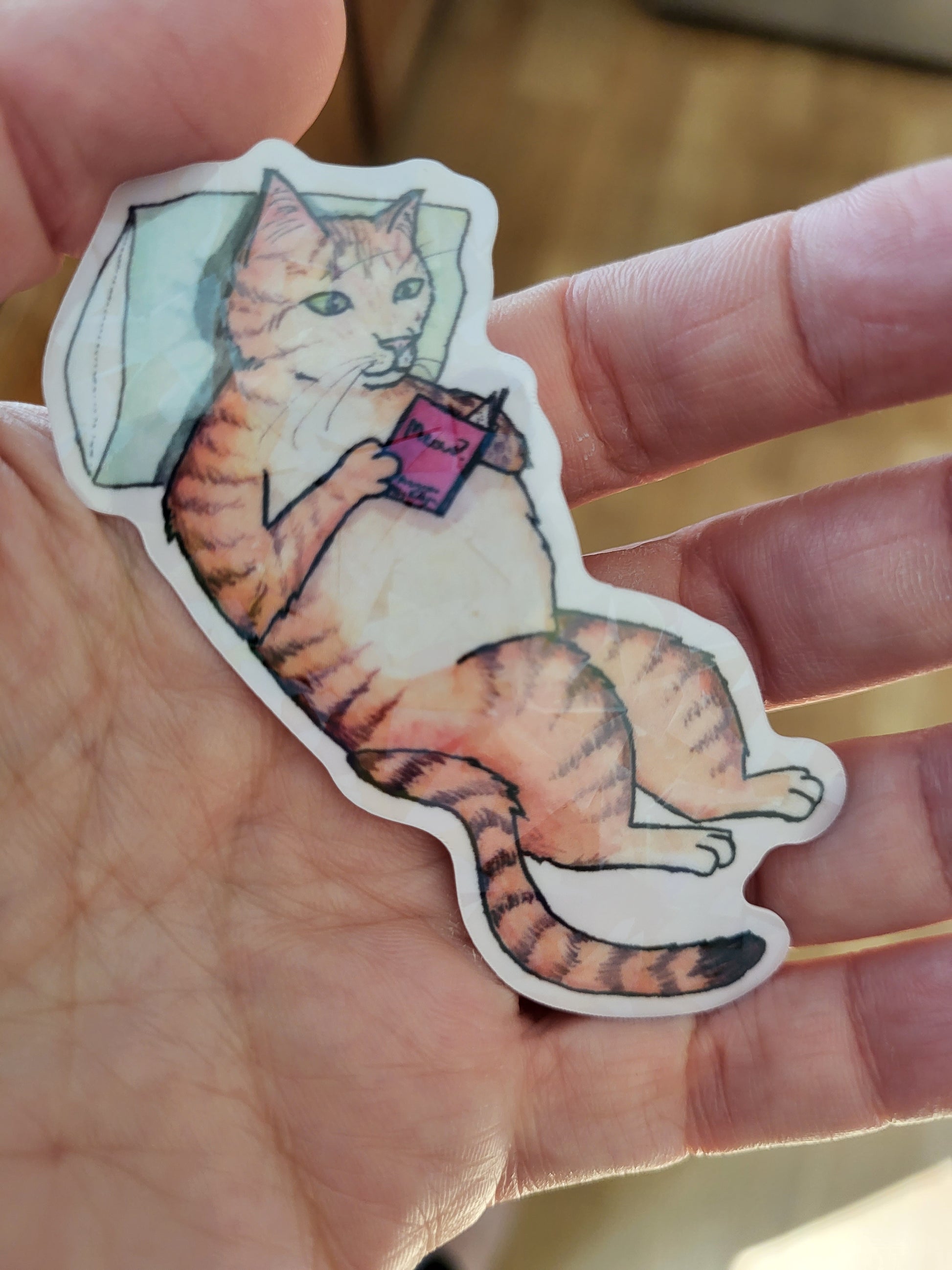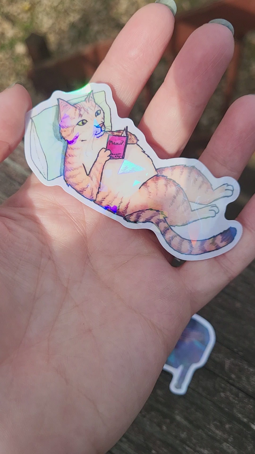 Vinyl sticker with holographic effect created from my art. Stickers will be shipped in a plastic bag in a letter sized envelope. All orders get a freebie sticker included
