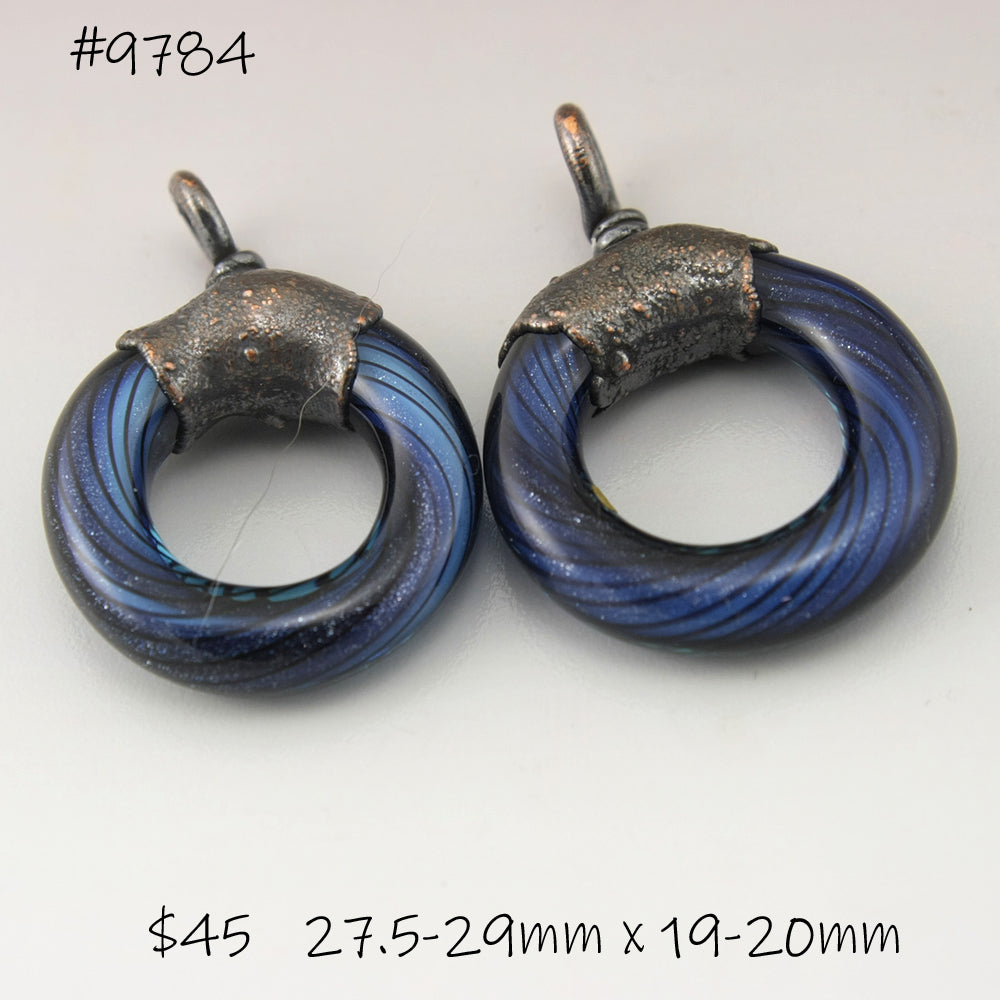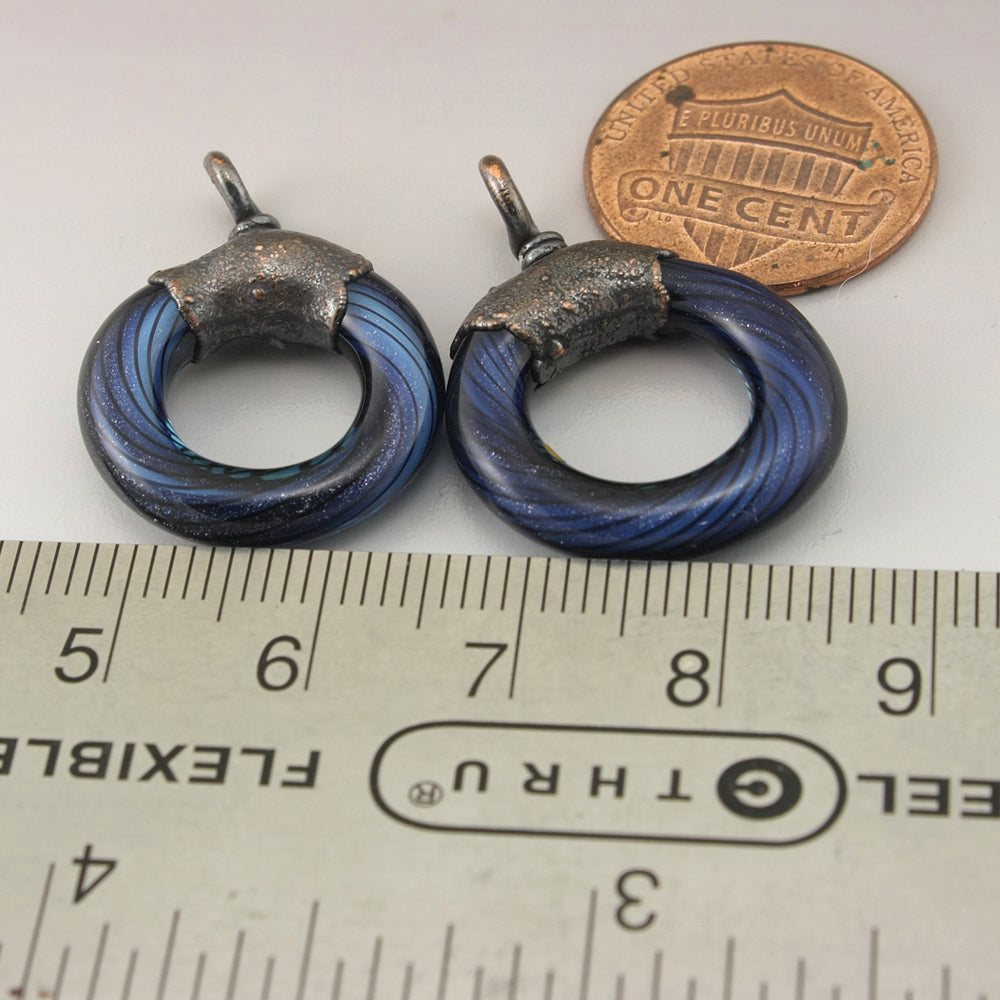 Dark aqua Blue Goldstone Black Pinstripes Helix Twist Circle with Copper Electroforming