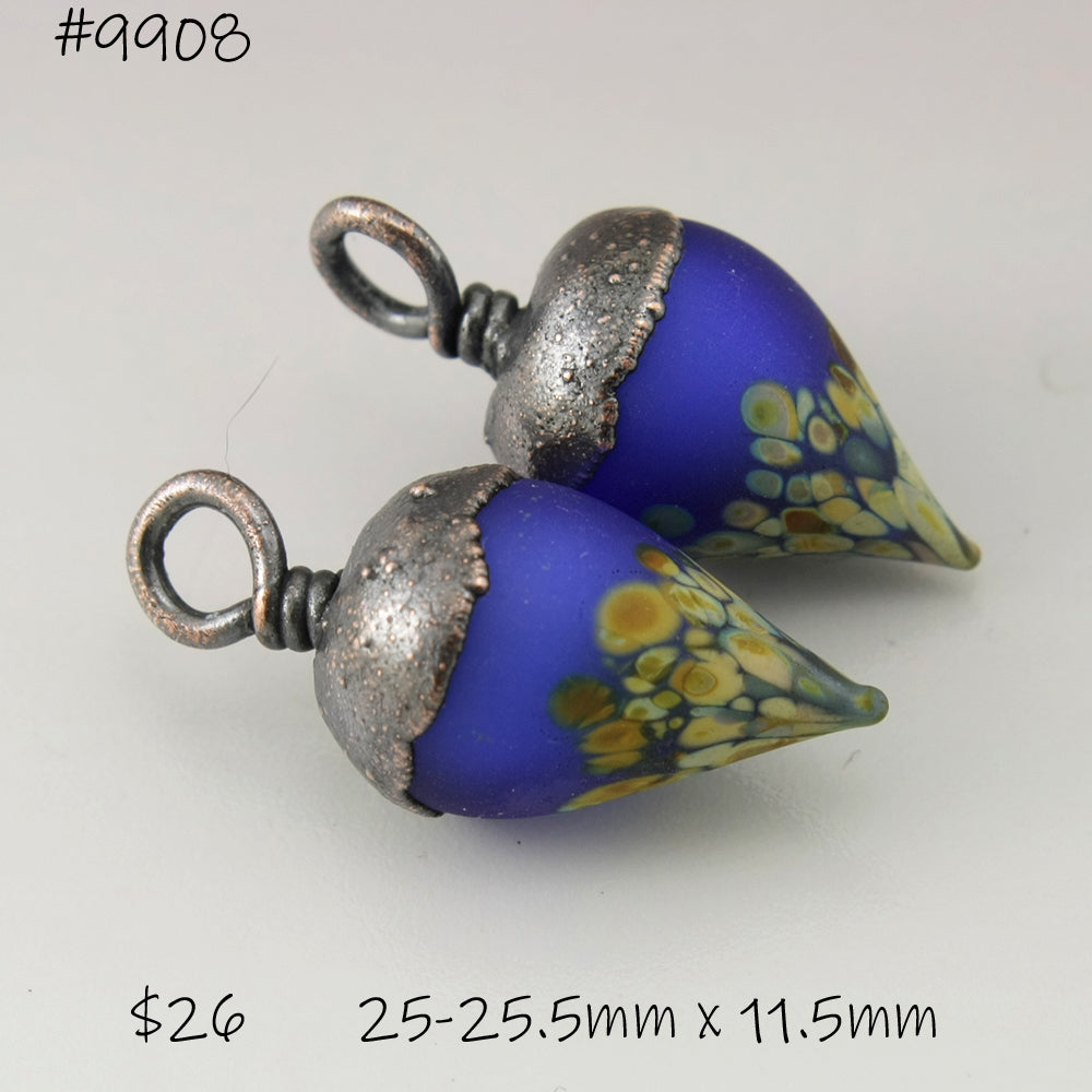 All my lampwork is annealed in a computer controlled kiln for strength and durability. Each piece is made one by one in the flame using glass from Italy, Germany, China and the US These are handmade so there might be a slight variance in size.