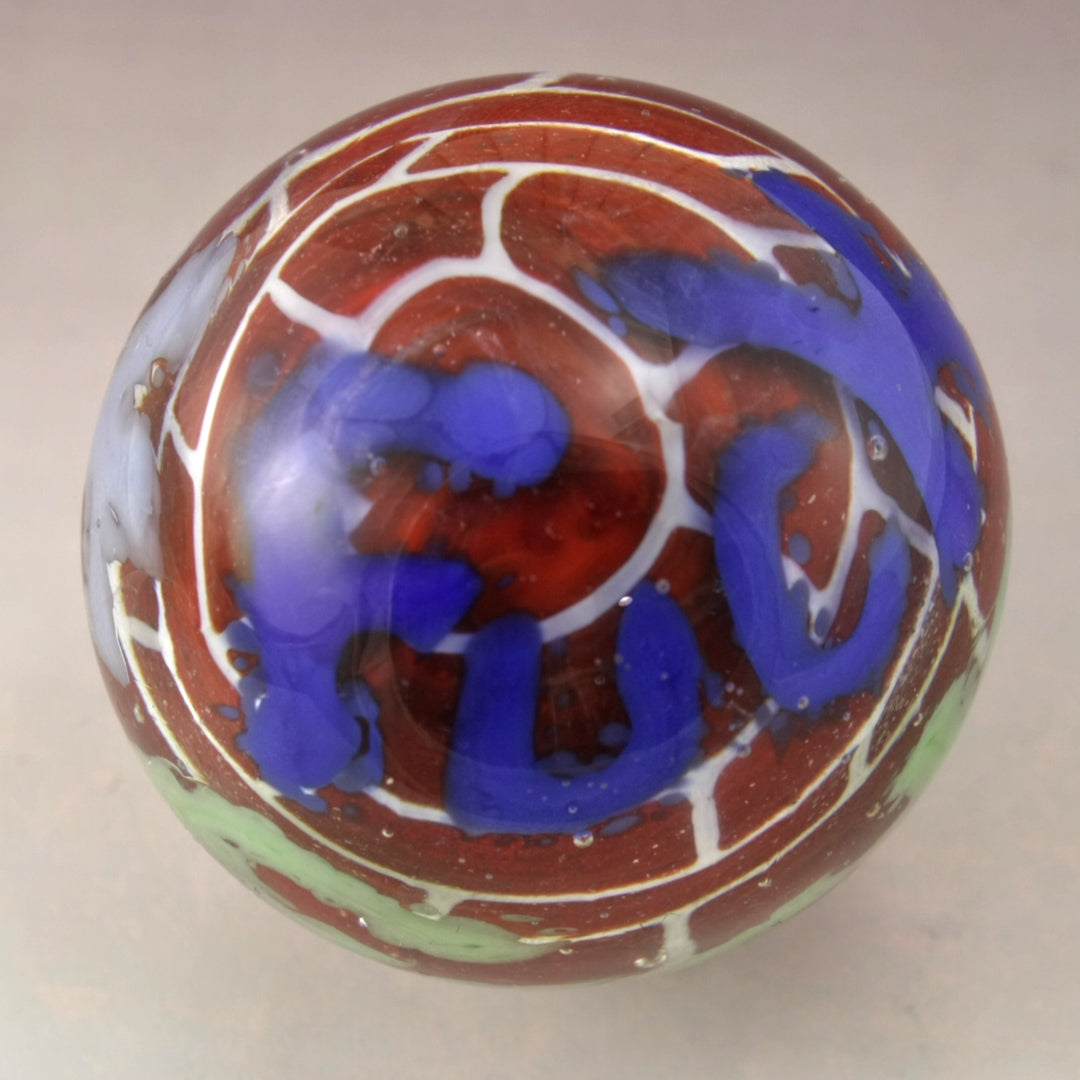 All my Marbles are annealed in a computer controlled kiln for strength and durability. These are handmade so there might be a slight variance in size. My marbles are all made in soft glass, so they are much softer and have less surface tension when melted than borosilicate. Because of the handmade nature, there can be some imperfections. I do get these as perfectly round as I can, but they are handmade.