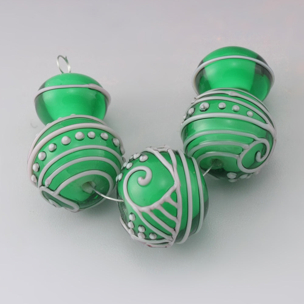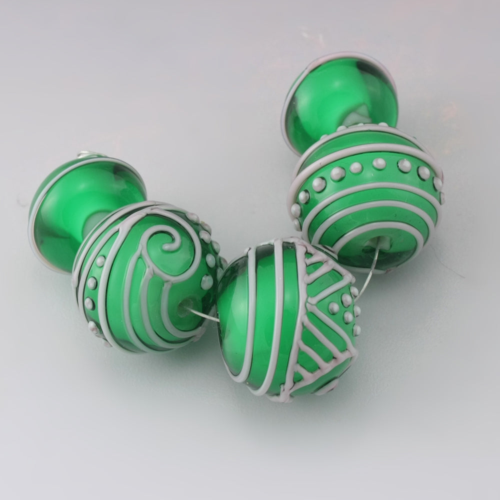Green over White Rounds with Light Pink Raised Linework Bead Set