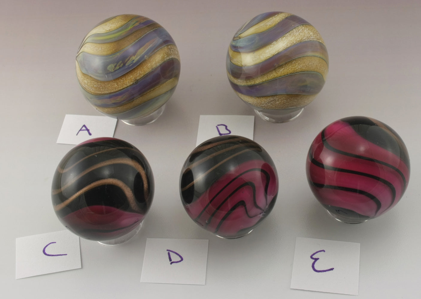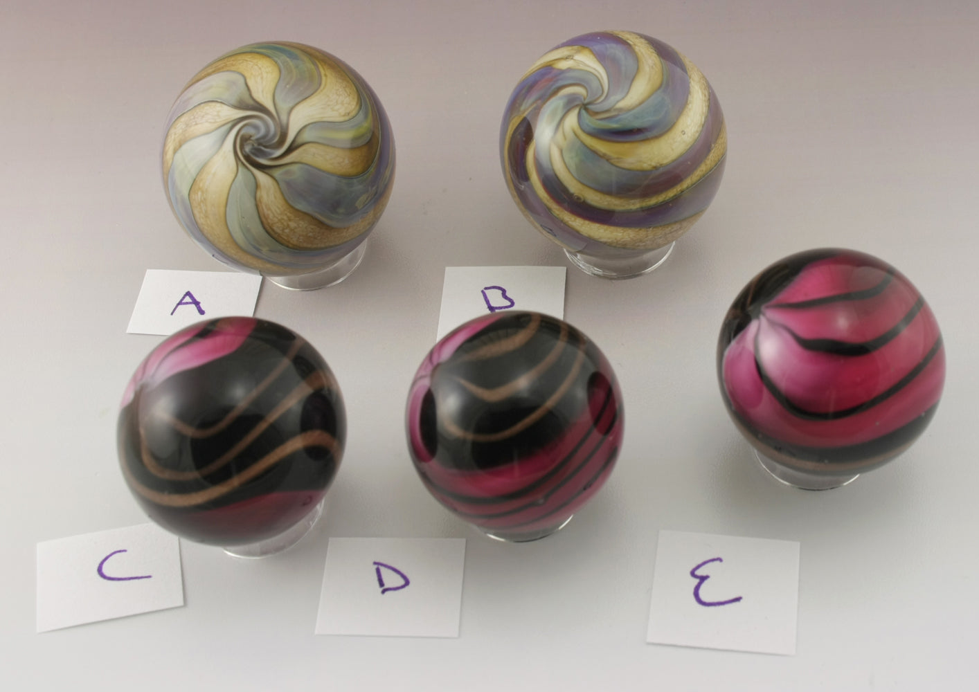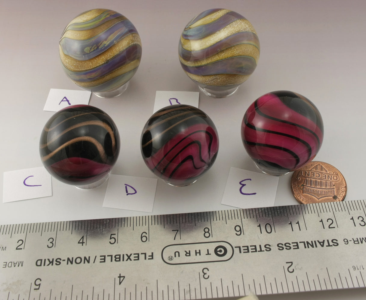 These handmade lampwork marbles are perfect for a petite addition to your collection or for hiders. Please select which one you would like corresponding to A through E. Pictures show many angles of the same marbles,