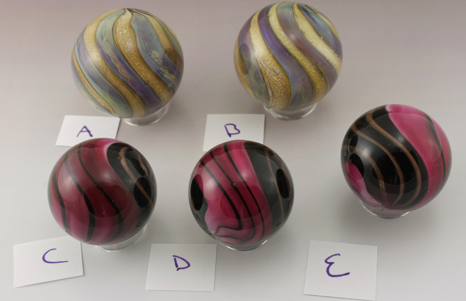 All my Marbles are annealed in a computer controlled kiln for strength and durability. These are handmade so there might be a slight variance in size. My marbles are all made in soft glass, so they are much softer and have less surface tension when melted than borosilicate. Because of the handmade nature, there can be some imperfections. I do get these as perfectly round as I can, but they are handmade.