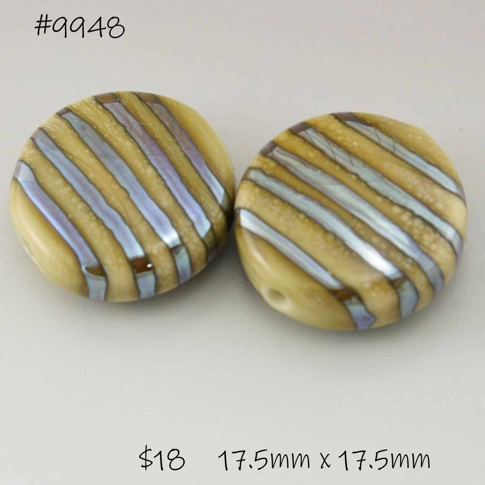 All my lampwork is annealed in a computer controlled kiln for strength and durability. Each piece is made one by one in the flame using glass from Italy, Germany, China and the US These are handmade so there might be a slight variance in size.