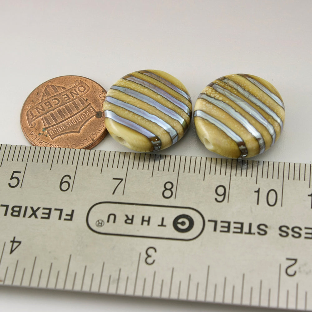 Handmade ivory lentils with metallic stripes. The design is the same on both sides