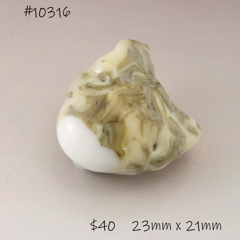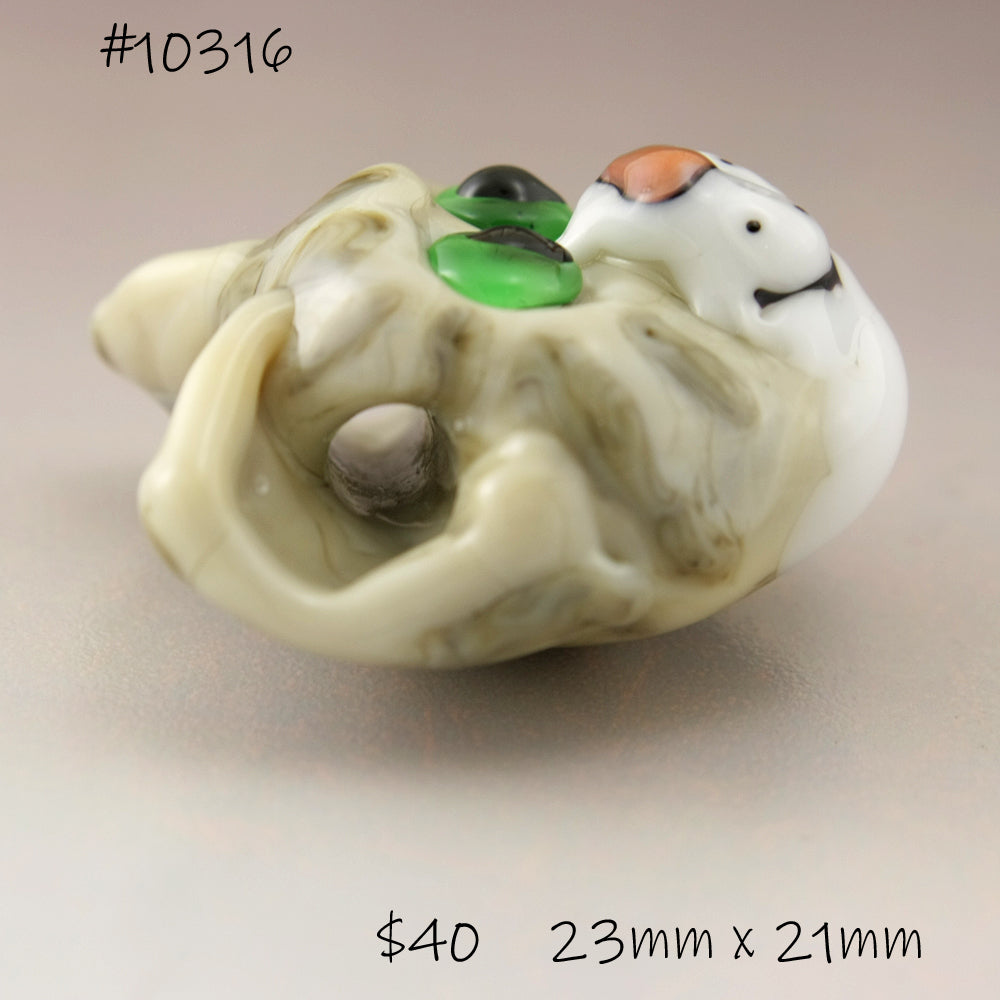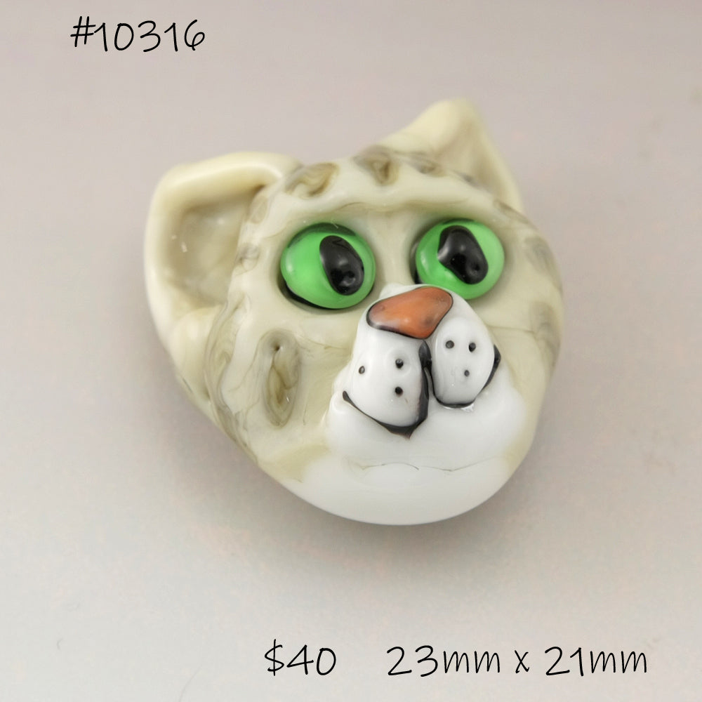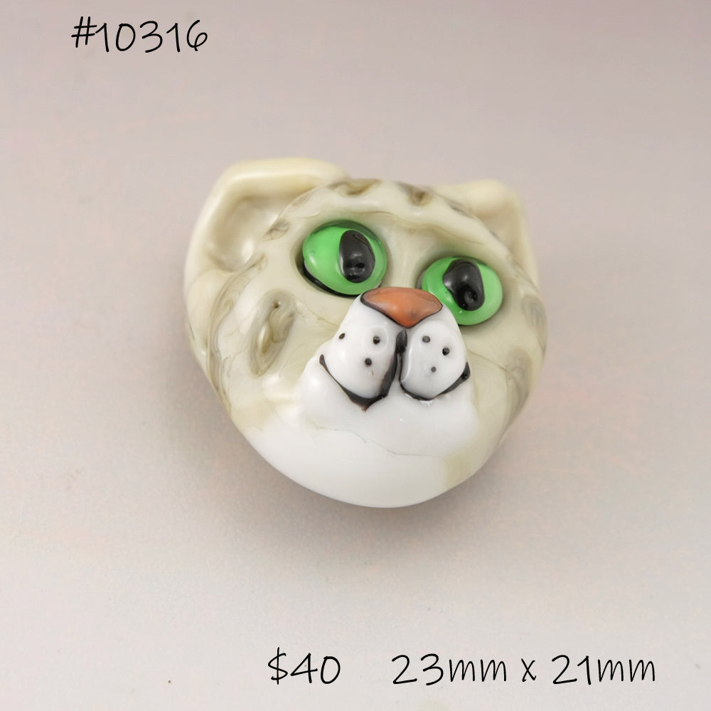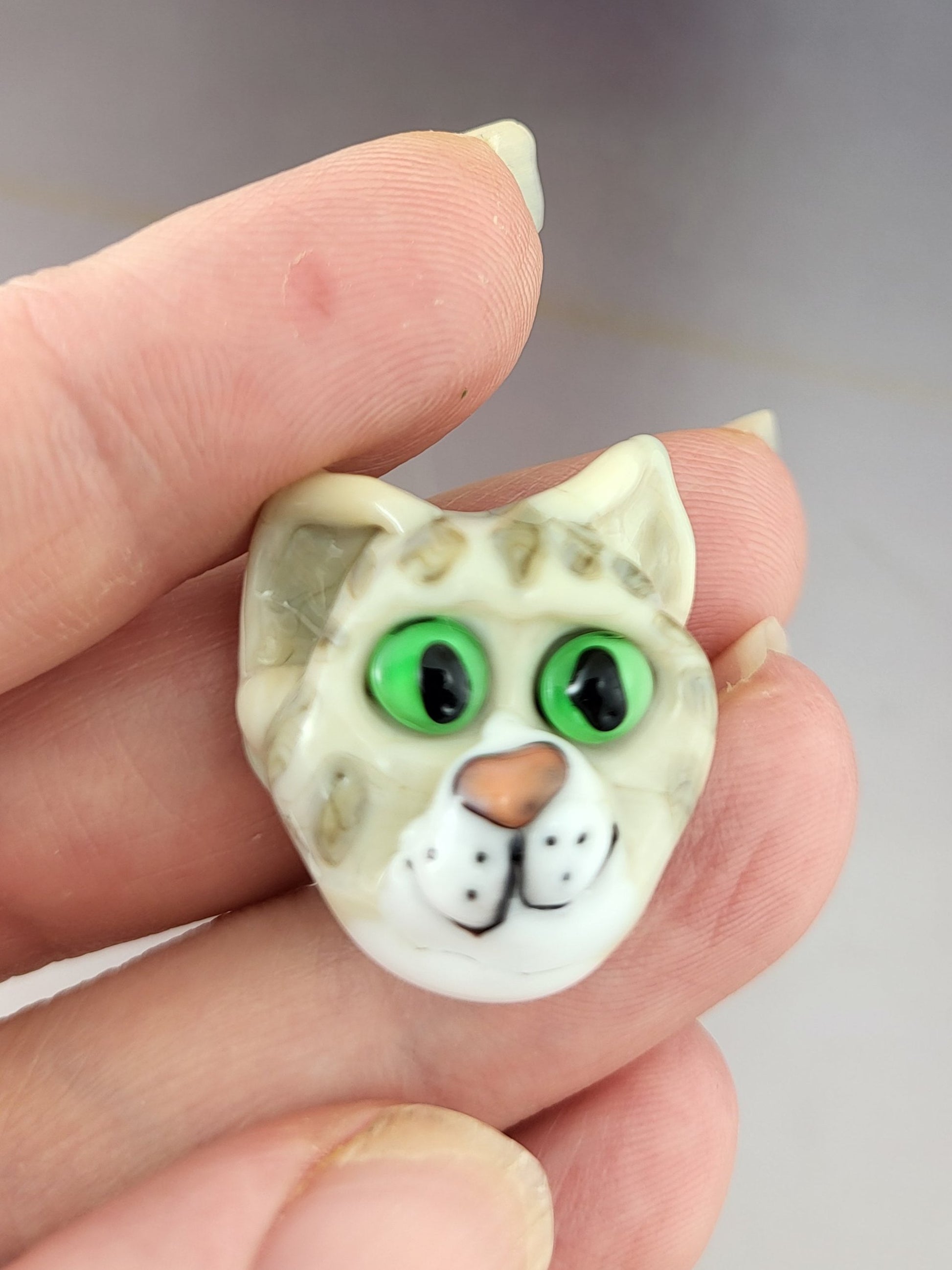 Ivory White Tabby with Green Eyes and Coral Nose Sculptural Bead