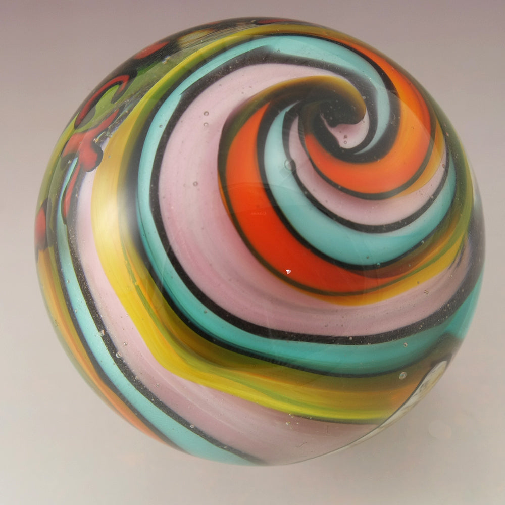 All my Marbles are annealed in a computer controlled kiln for strength and durability. These are handmade so there might be a slight variance in size. My marbles are all made in soft glass, so they are much softer and have less surface tension when melted than borosilicate. Because of the handmade nature, there can be some imperfections. I do get these as perfectly round as I can, but they are handmade.