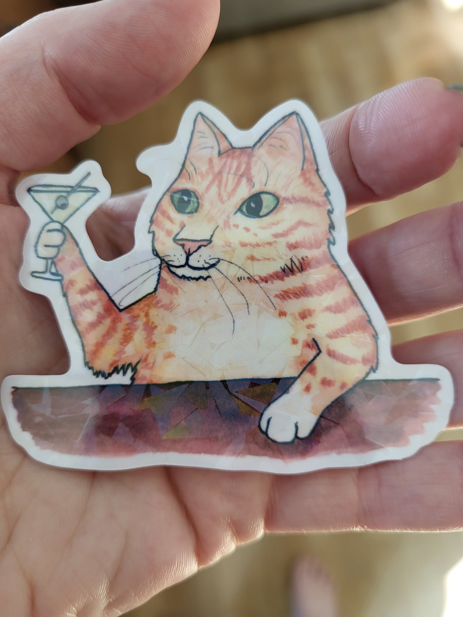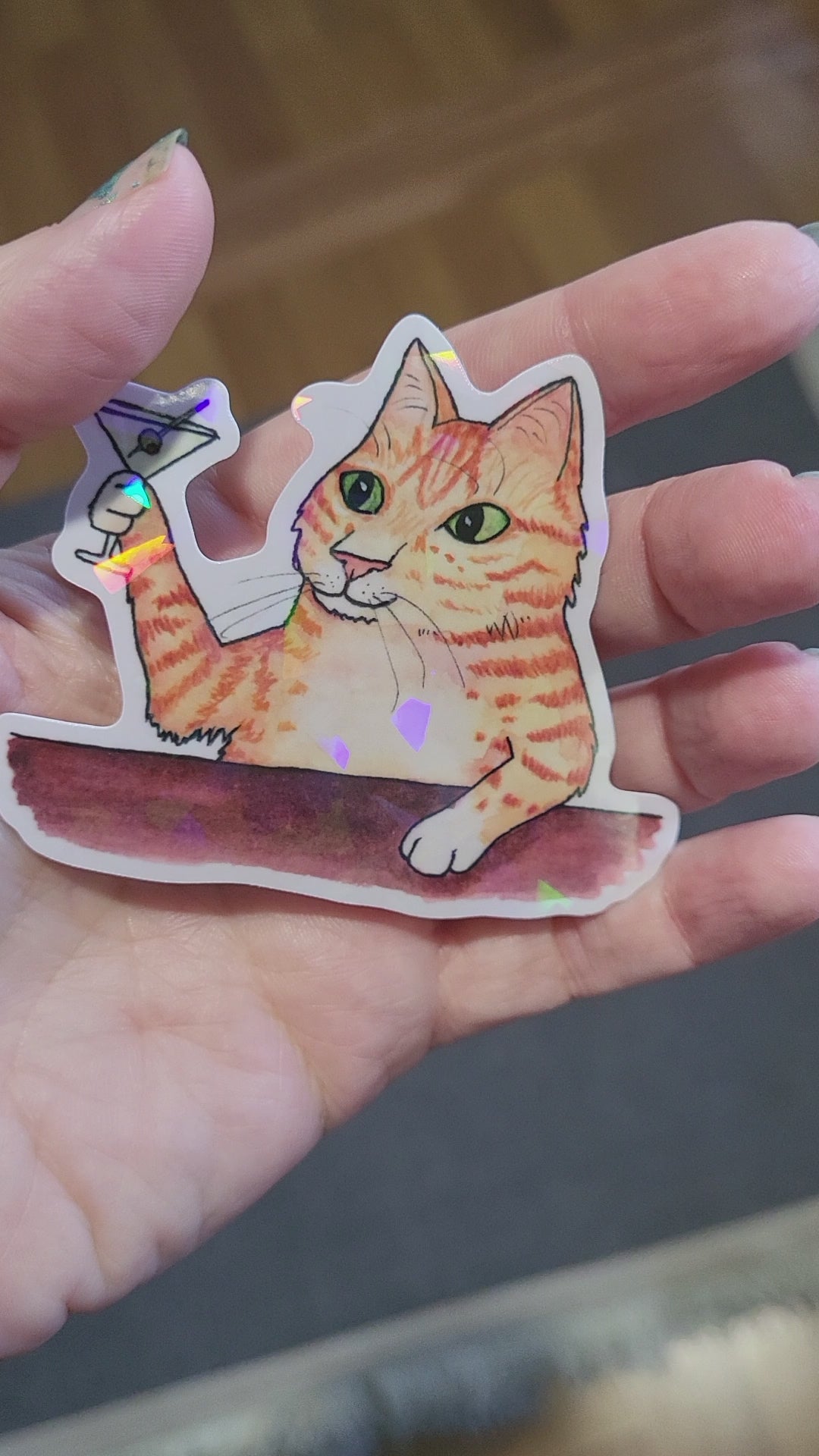 Vinyl sticker with holographic effect created from my art. Stickers will be shipped in a plastic bag in a letter sized envelope. All orders get a freebie sticker included