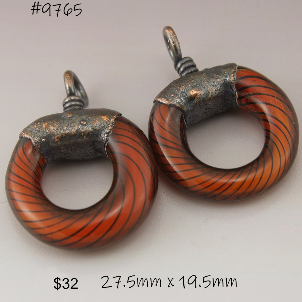 These are made with handmade lampwork glass and copper electroforming. Measurement includes the loop.