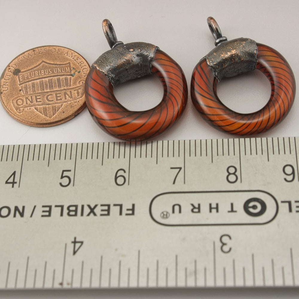 Orange Goldstone Black Pinstripes Helix Twist Circle with Copper Electroforming