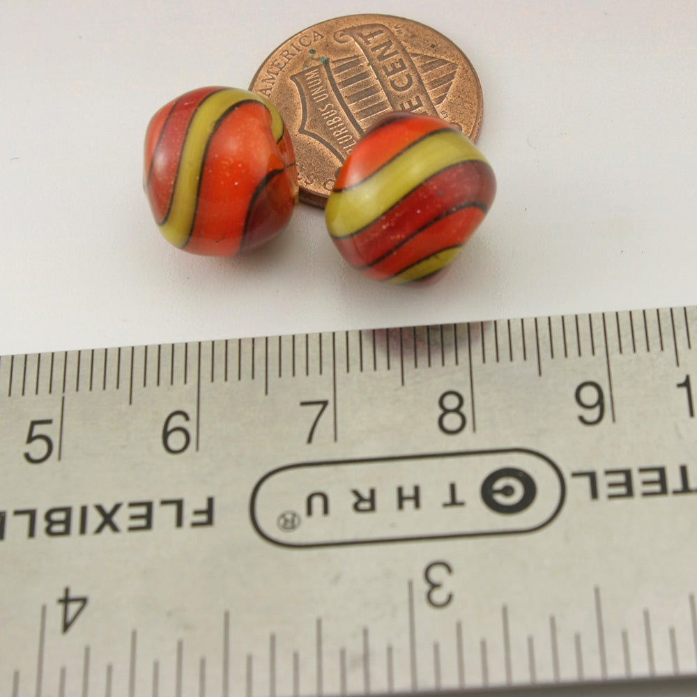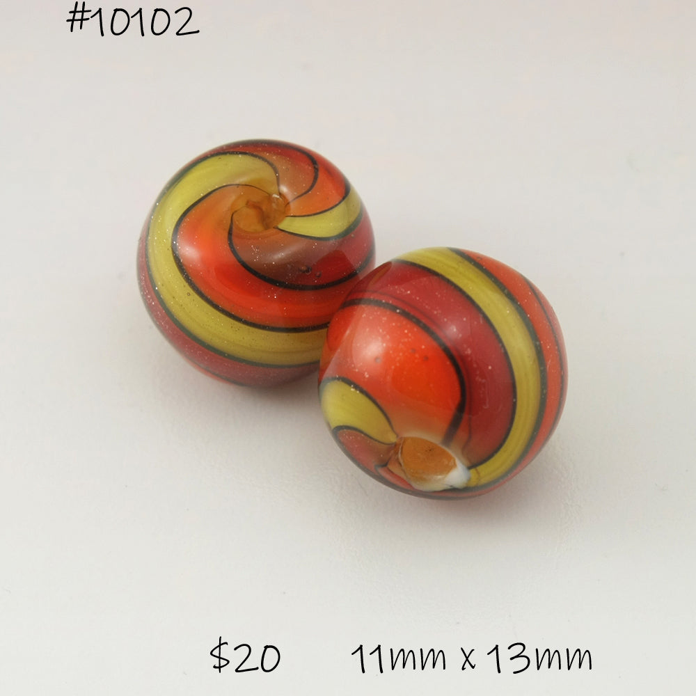 All my lampwork is annealed in a computer controlled kiln for strength and durability. Each piece is made one by one in the flame using glass from Italy, Germany, China and the US These are handmade so there might be a slight variance in size.
