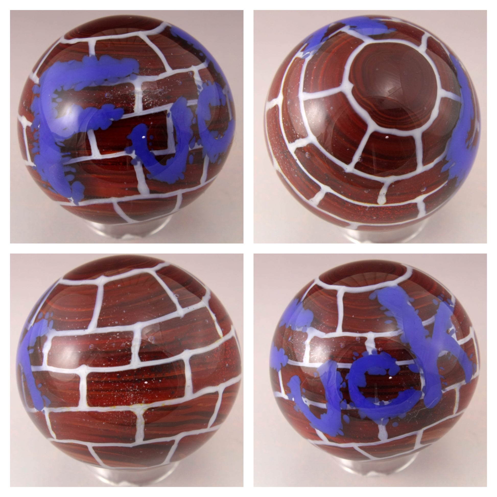 All my Marbles are annealed in a computer controlled kiln for strength and durability. These are handmade so there might be a slight variance in size. My marbles are all made in soft glass, so they are much softer and have less surface tension when melted than borosilicate. Because of the handmade nature, there can be some imperfections. I do get these as perfectly round as I can, but they are handmade.