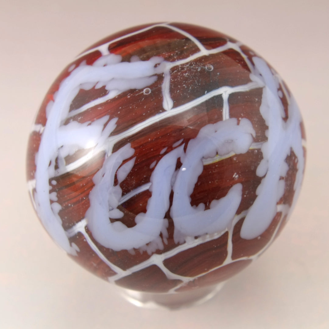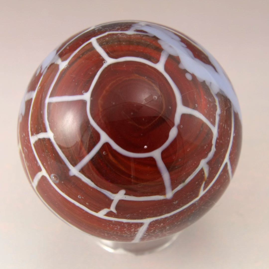 All my Marbles are annealed in a computer controlled kiln for strength and durability. These are handmade so there might be a slight variance in size. My marbles are all made in soft glass, so they are much softer and have less surface tension when melted than borosilicate. Because of the handmade nature, there can be some imperfections. I do get these as perfectly round as I can, but they are handmade.