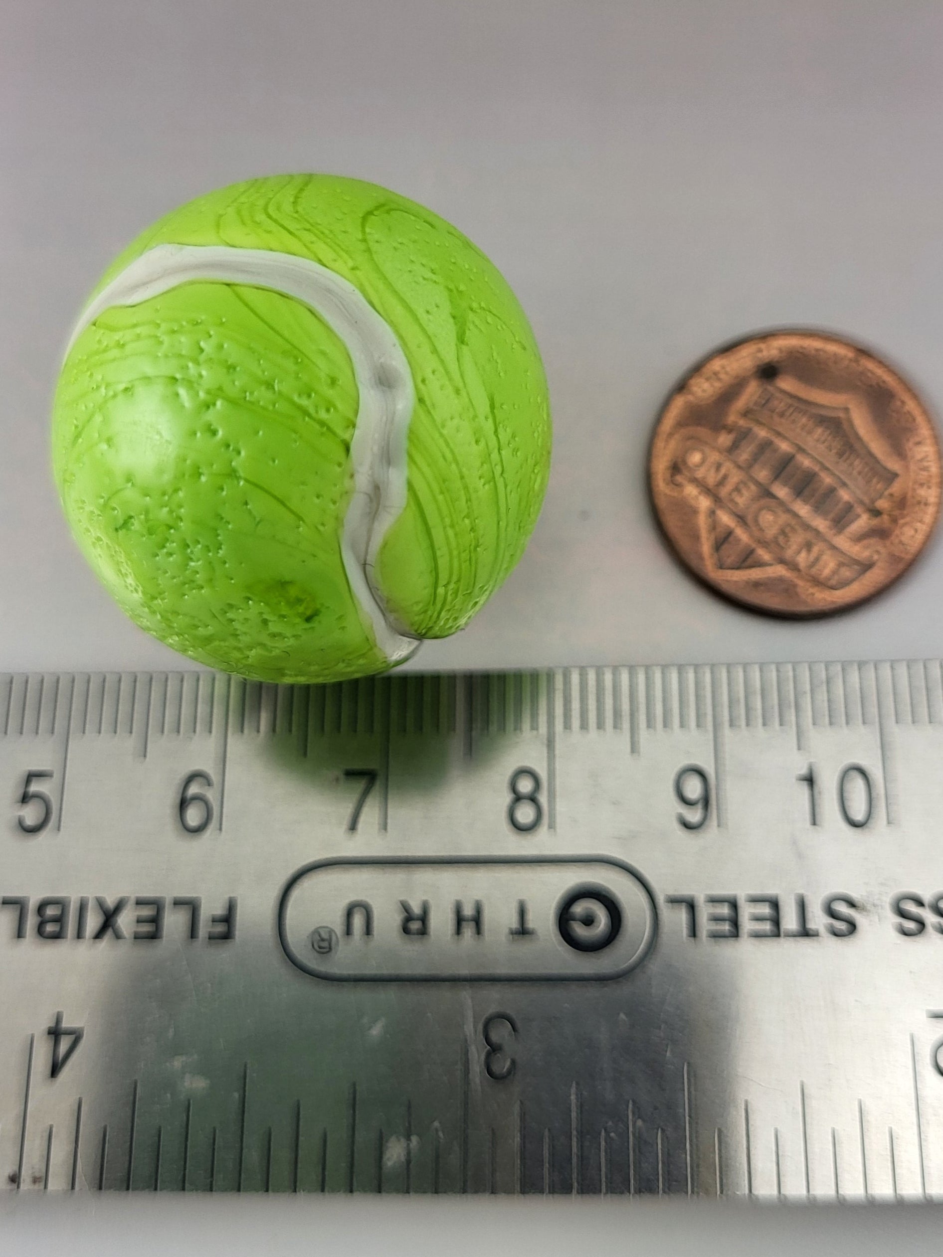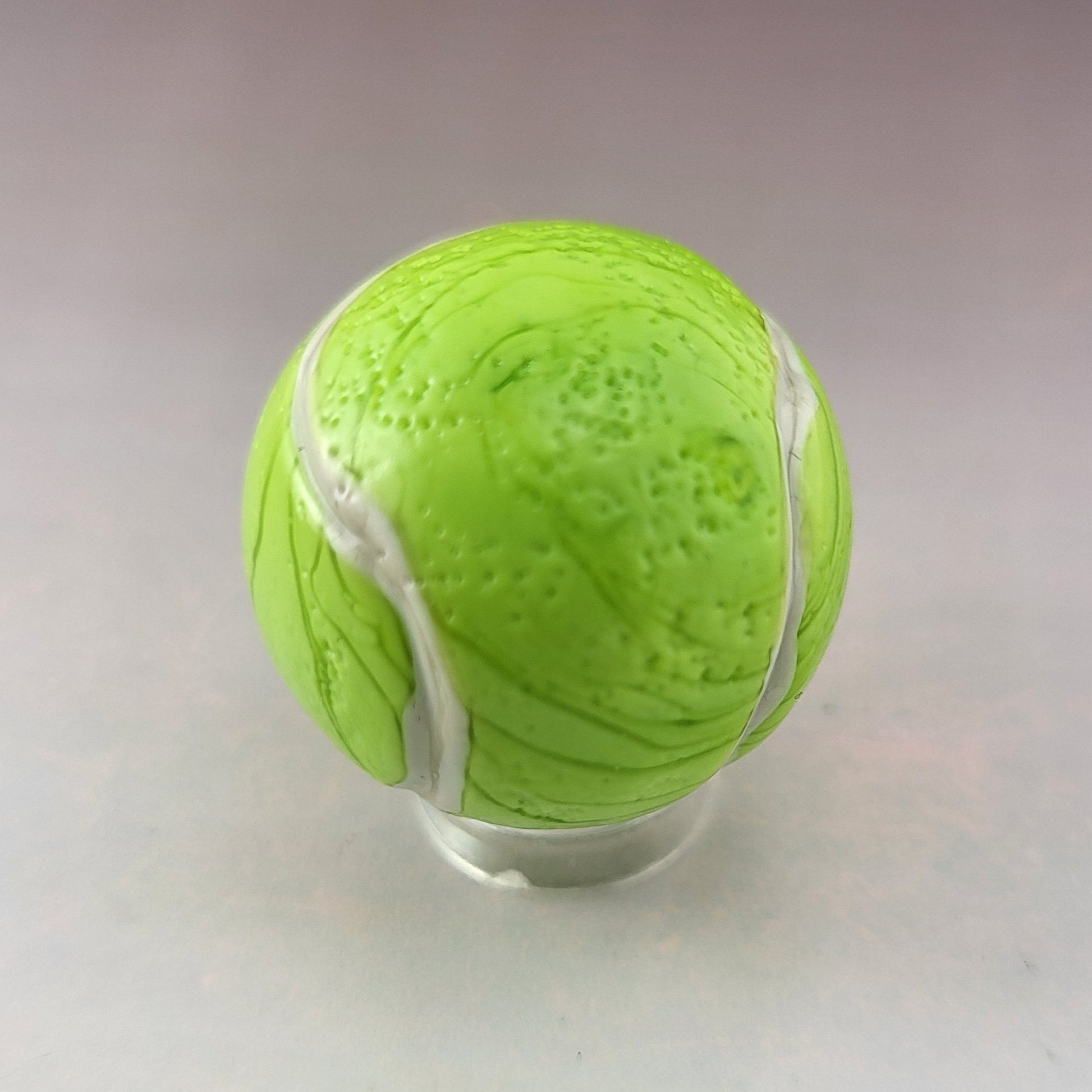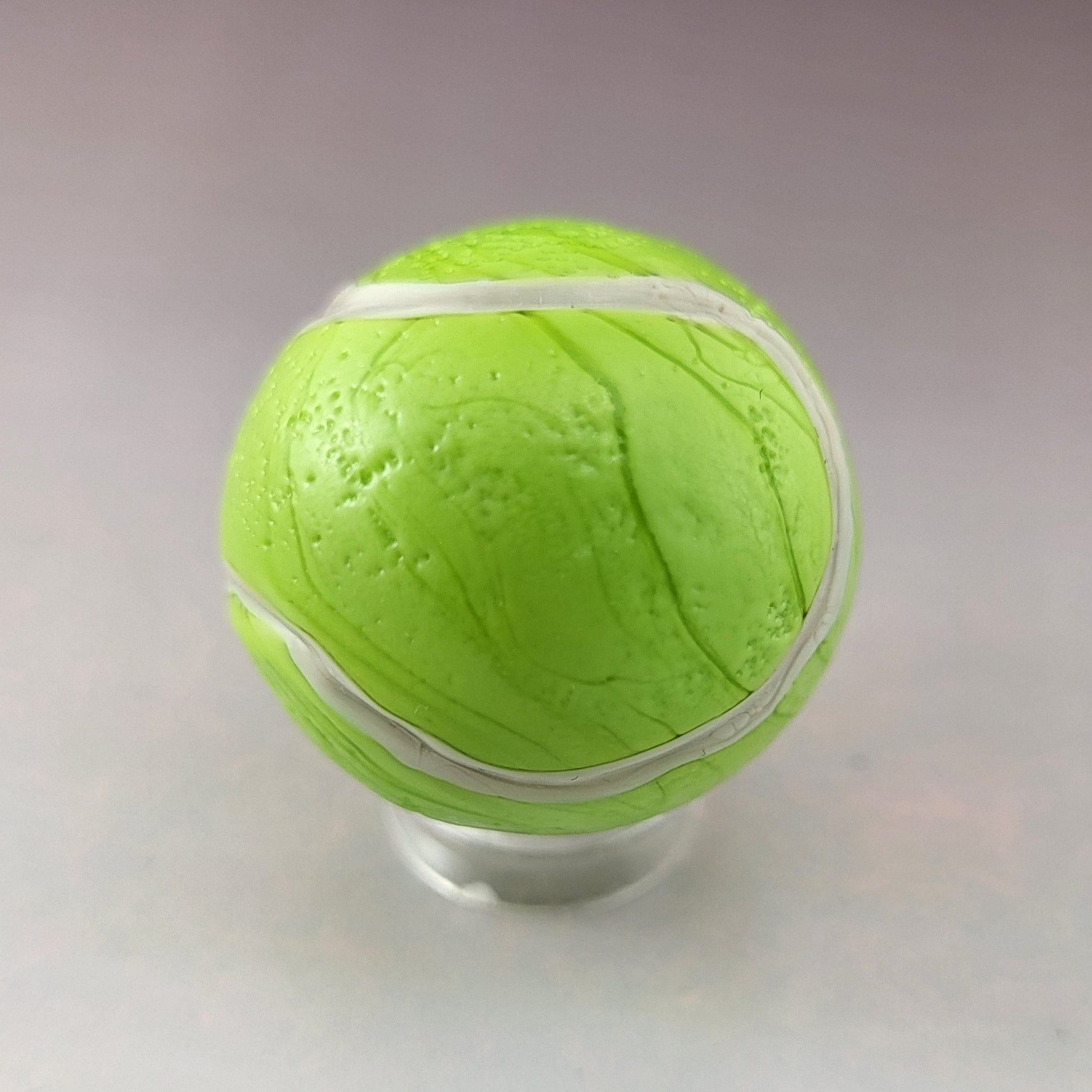 Green marble with ivory creased lines and and lightly etched texture to represent a tennis ball