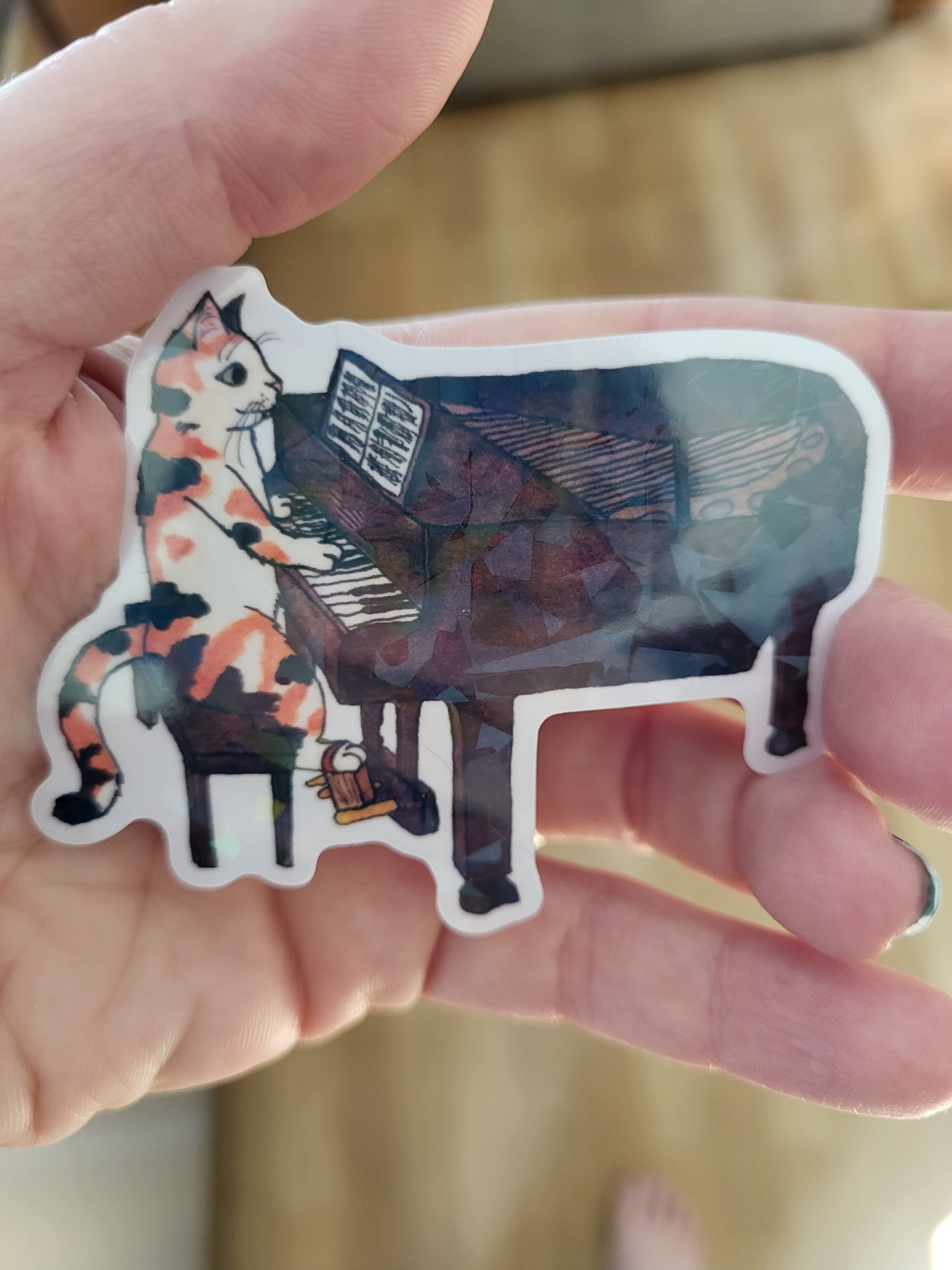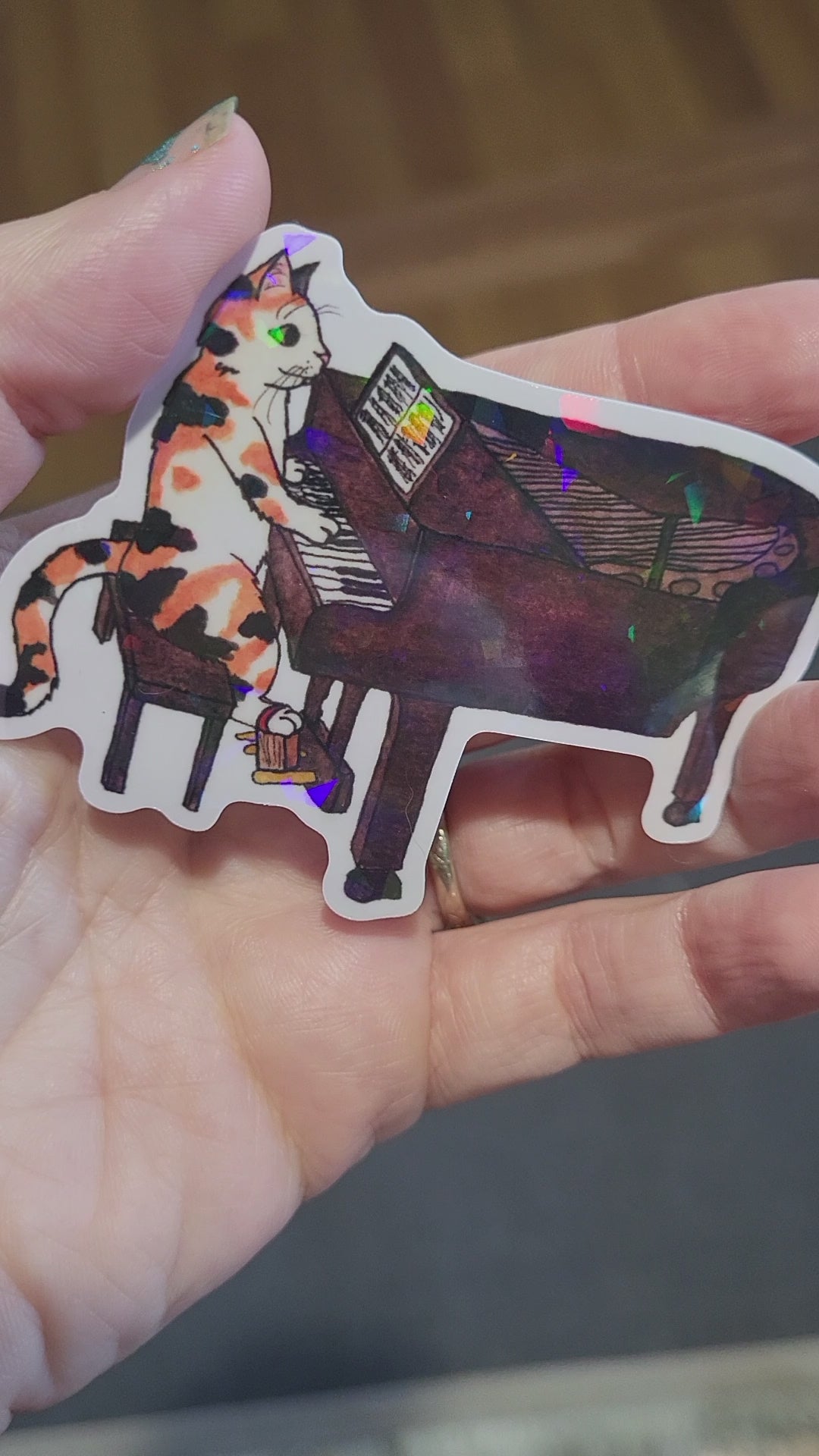 Vinyl sticker with holographic effect created from my art. Stickers will be shipped in a plastic bag in a letter sized envelope. All orders get a freebie sticker included