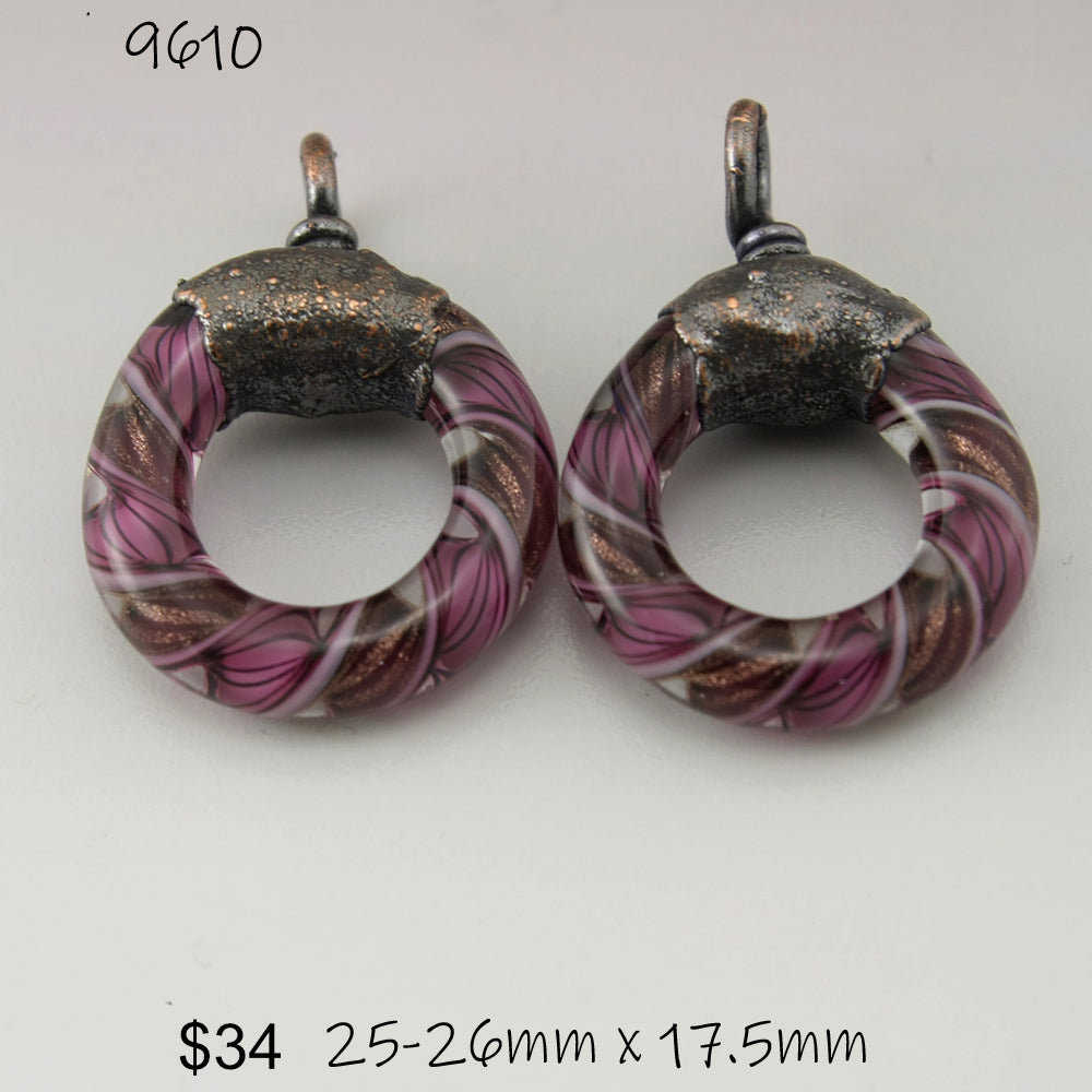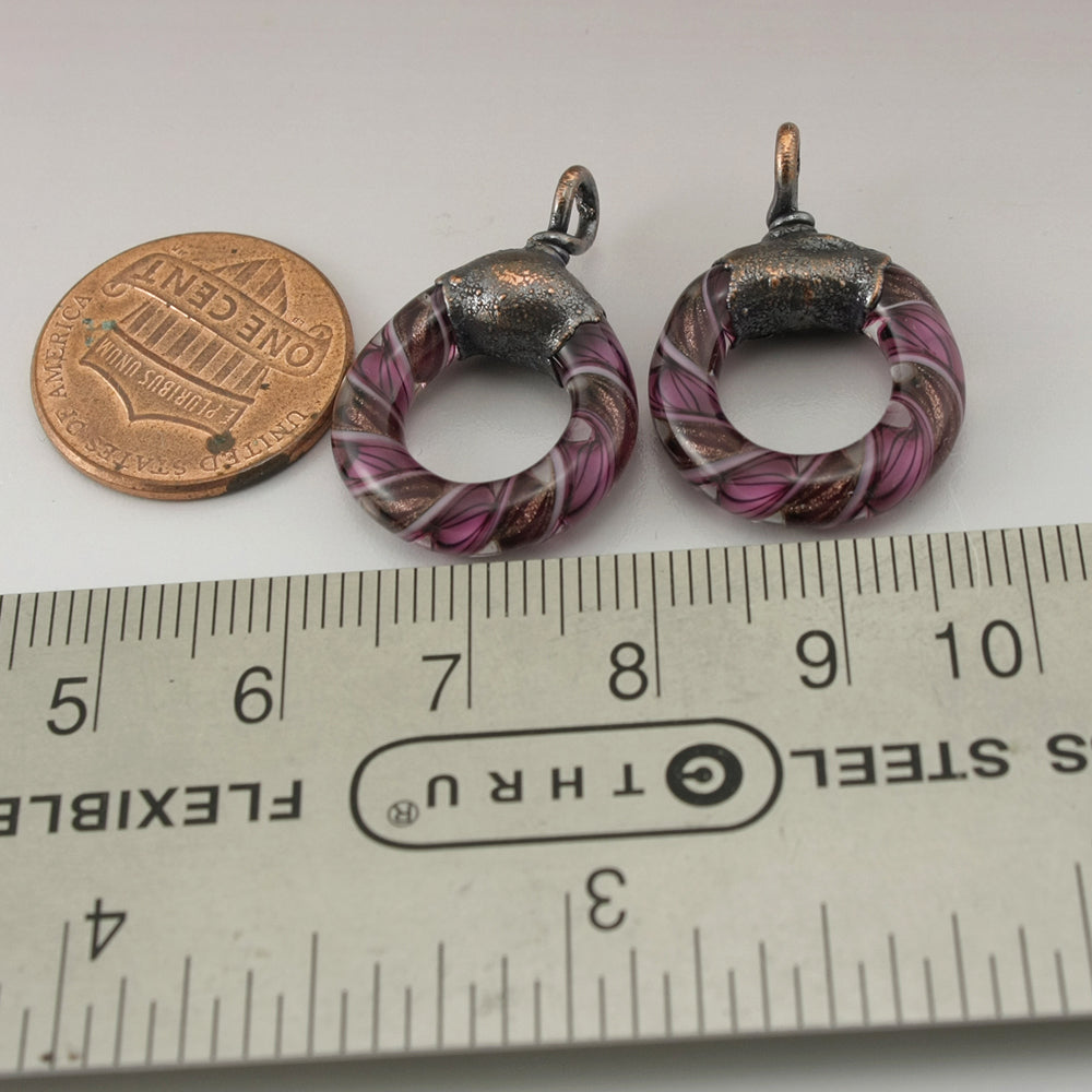 These are made with handmade lampwork glass and copper electroforming. Measurement includes the loop.