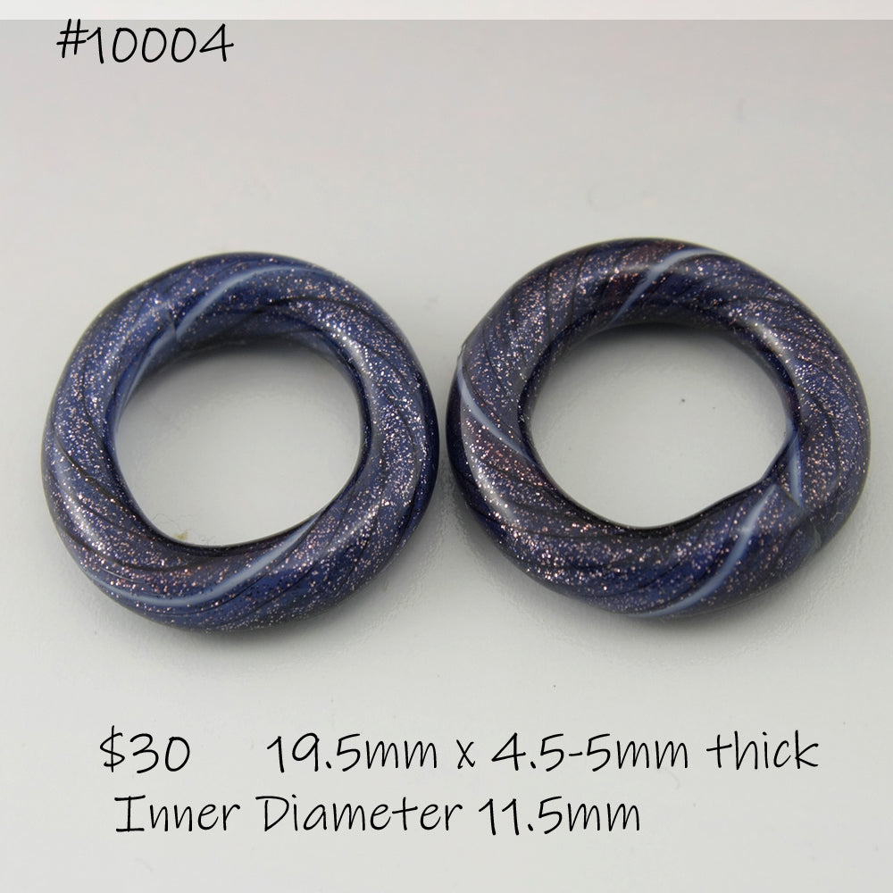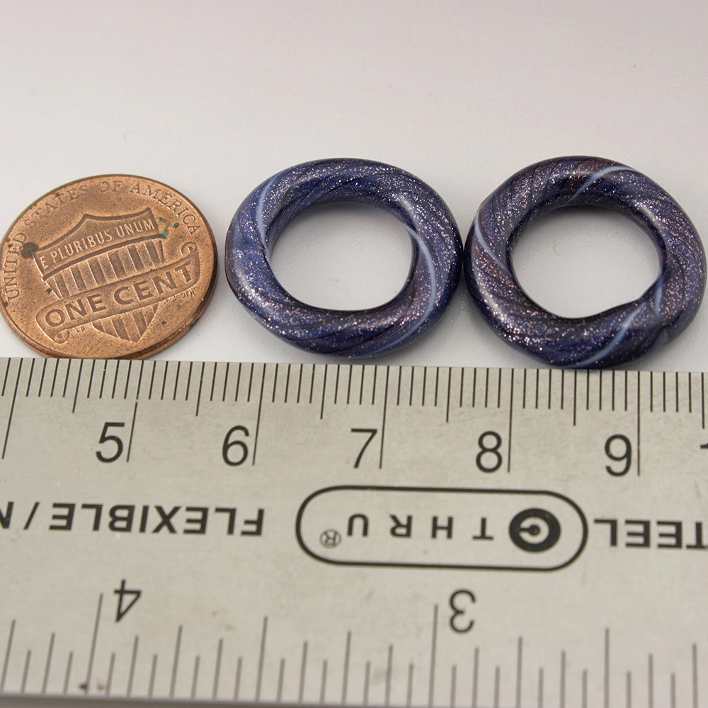 Handmade Purple Blue goldstone sparkle and black pinstripes twisty circle loop pair