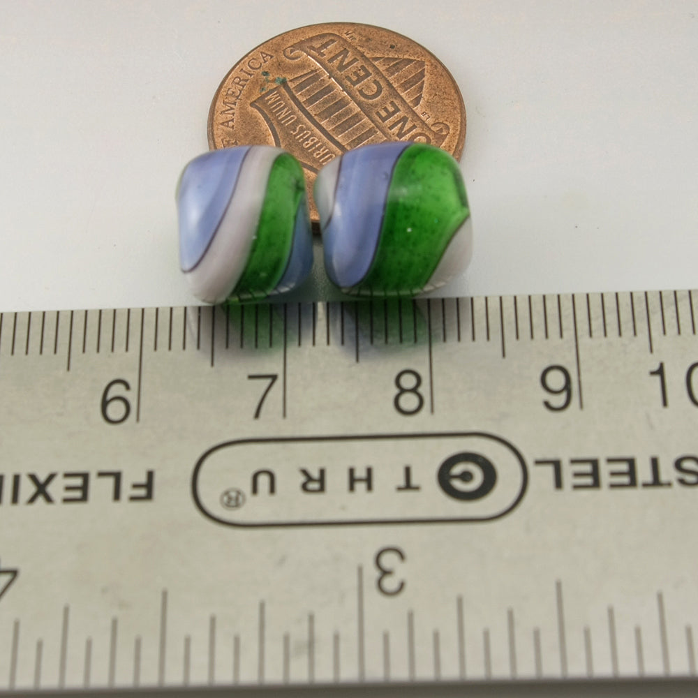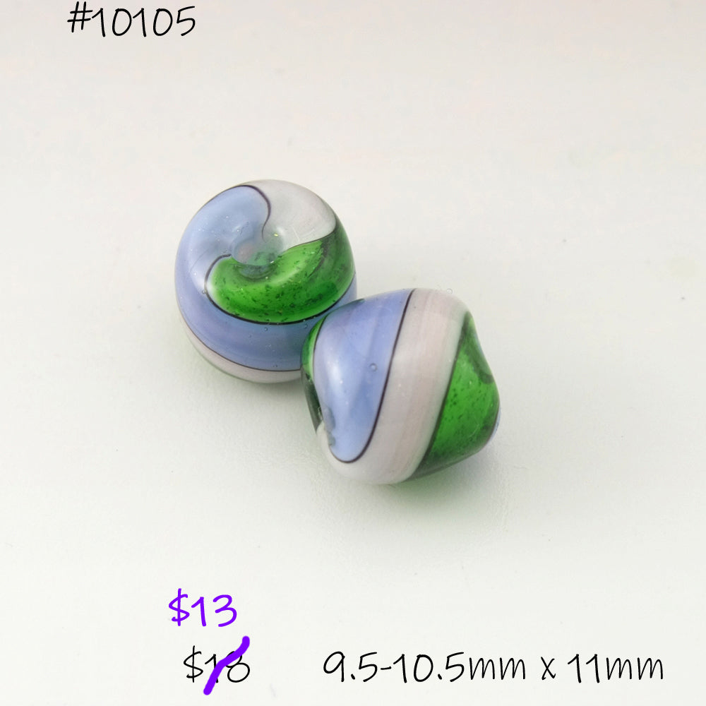 All my lampwork is annealed in a computer controlled kiln for strength and durability. Each piece is made one by one in the flame using glass from Italy, Germany, China and the US These are handmade so there might be a slight variance in size.