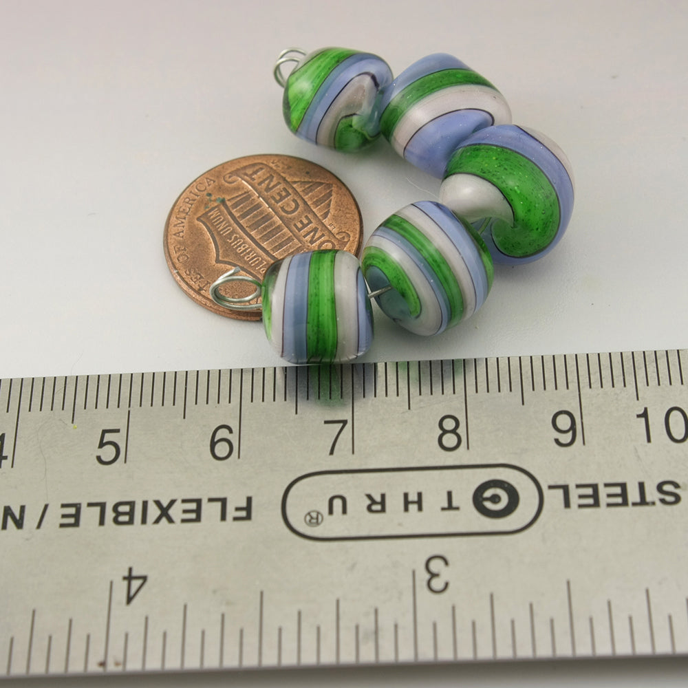 All my lampwork is annealed in a computer controlled kiln for strength and durability. Each piece is made one by one in the flame using glass from Italy, Germany, China and the US These are handmade so there might be a slight variance in size.