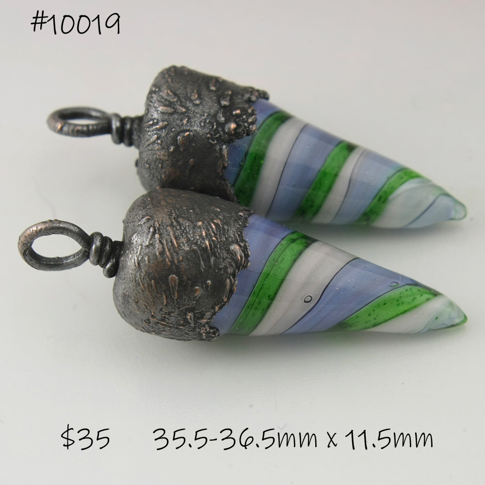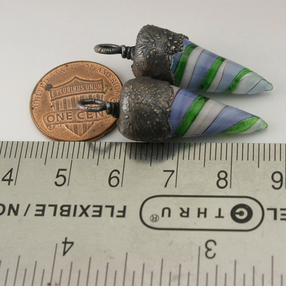 These are made with handmade lampwork glass and copper electroforming. Measurement includes the loop.