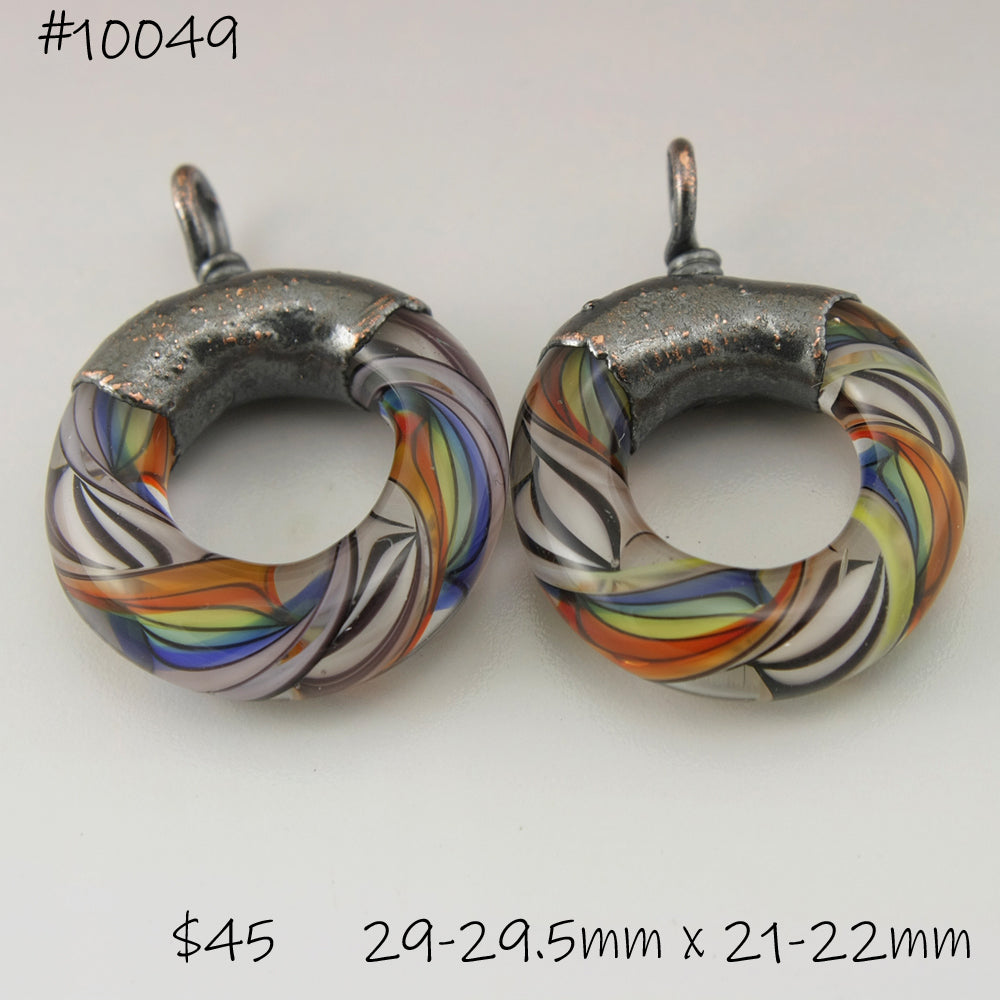 Rainbow Black and White Helix Twist Circle Pair with Copper Electroforming