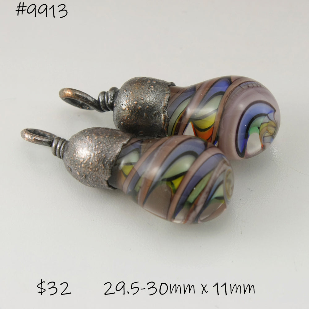All my lampwork is annealed in a computer controlled kiln for strength and durability. Each piece is made one by one in the flame using glass from Italy, Germany, China and the US These are handmade so there might be a slight variance in size.