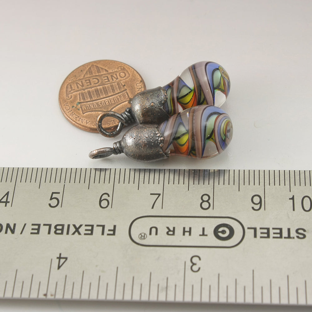 Handmade rainbow helix twisty drips with Copper Electroforming Oxidized pair