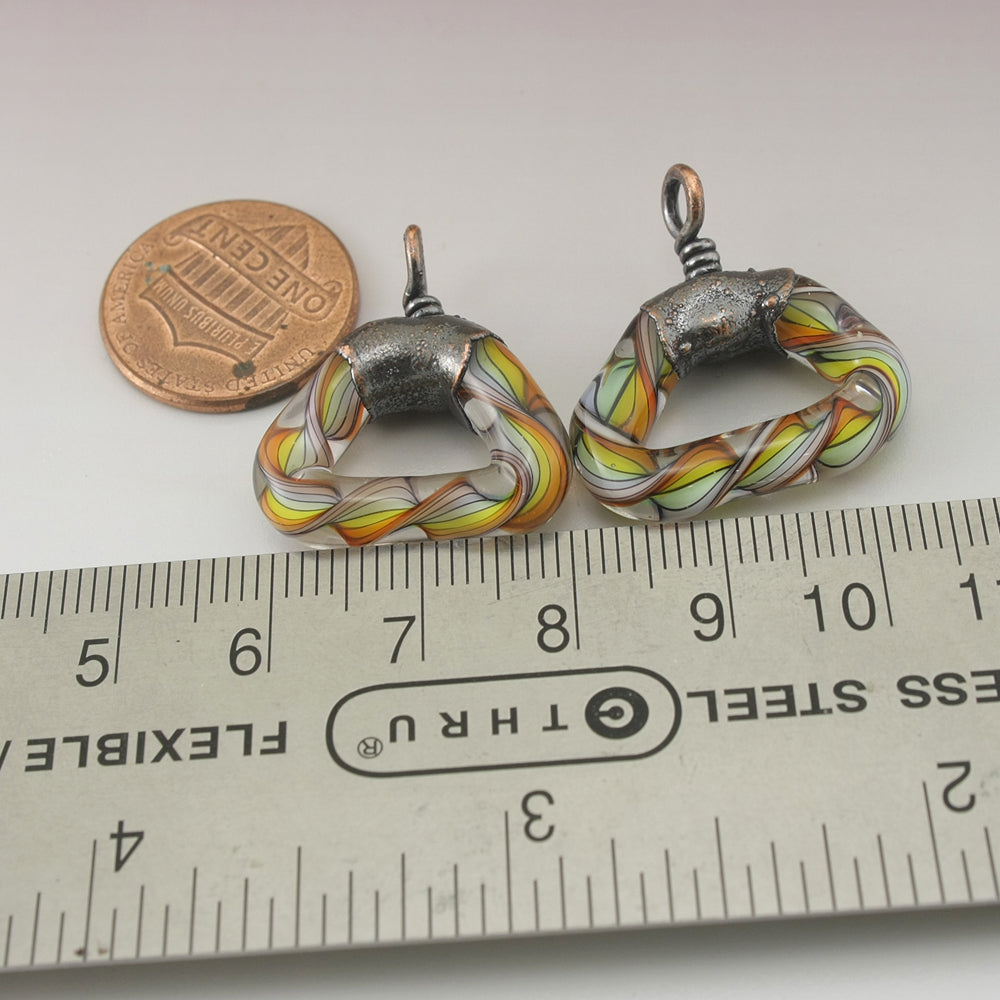 All my lampwork is annealed in a computer controlled kiln for strength and durability. Each piece is made one by one in the flame using glass from Italy, Germany, China and the US These are handmade so there might be a slight variance in size.