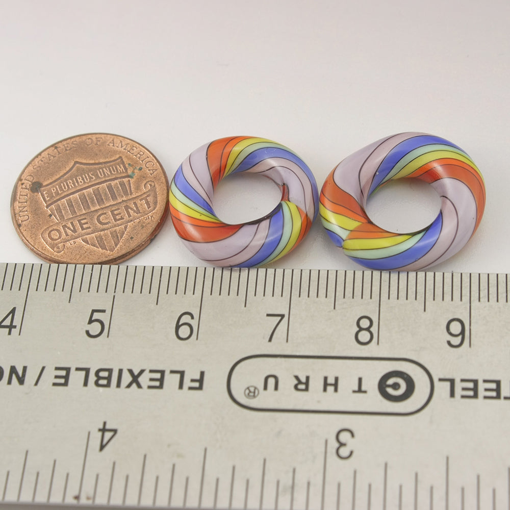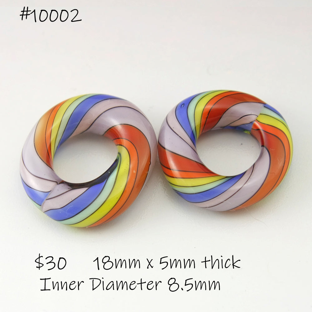 All my lampwork is annealed in a computer controlled kiln for strength and durability. Each piece is made one by one in the flame using glass from Italy, Germany, China and the US These are handmade so there might be a slight variance in size.