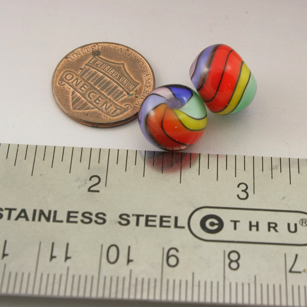 All my lampwork is annealed in a computer controlled kiln for strength and durability. Each piece is made one by one in the flame using glass from Italy, Germany, China and the US These are handmade so there might be a slight variance in size.