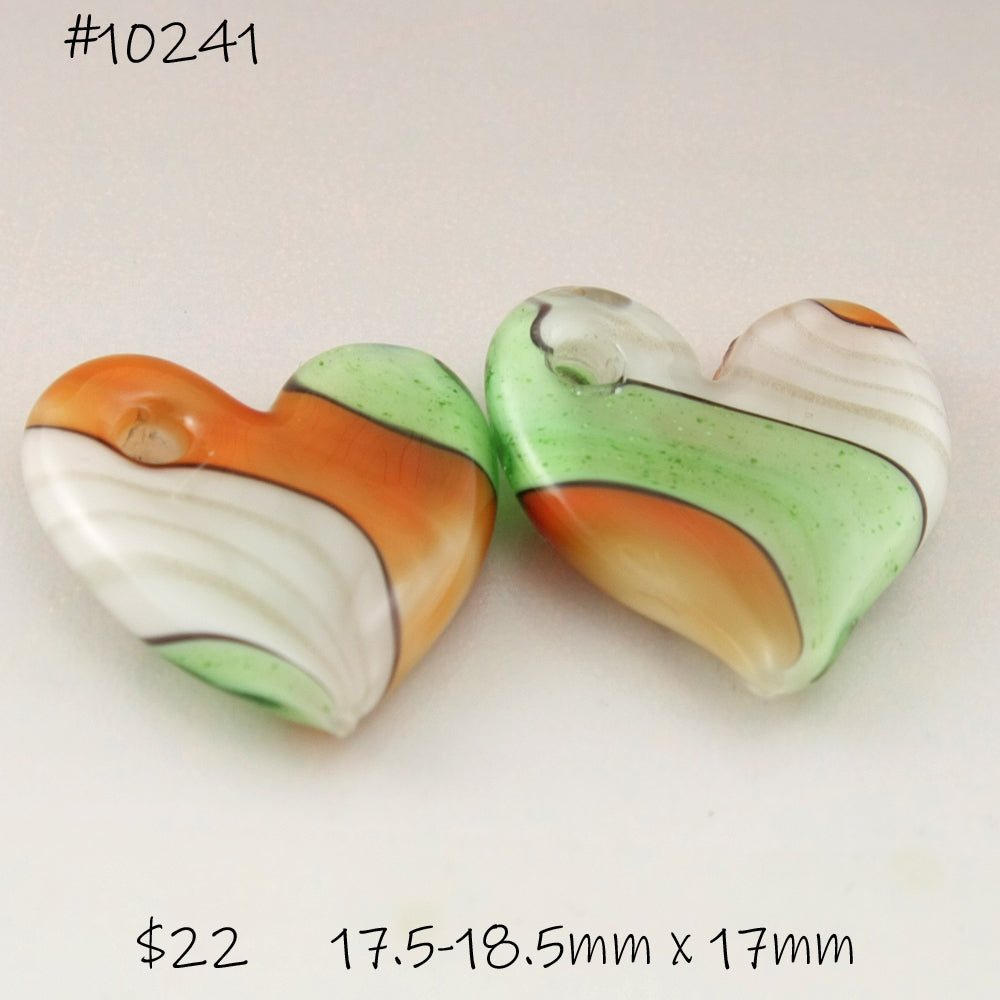 Handmade Red, Green sparkle, White with sparkling goldstone and black twistie flat heart pair