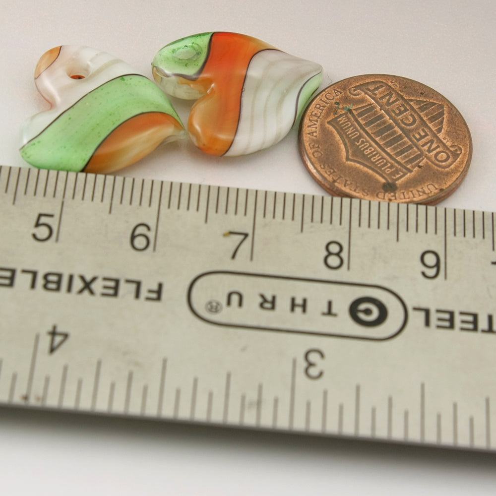 All my lampwork is annealed in a computer controlled kiln for strength and durability. Each piece is made one by one in the flame using glass from Italy, Germany, China and the US These are handmade so there might be a slight variance in size.