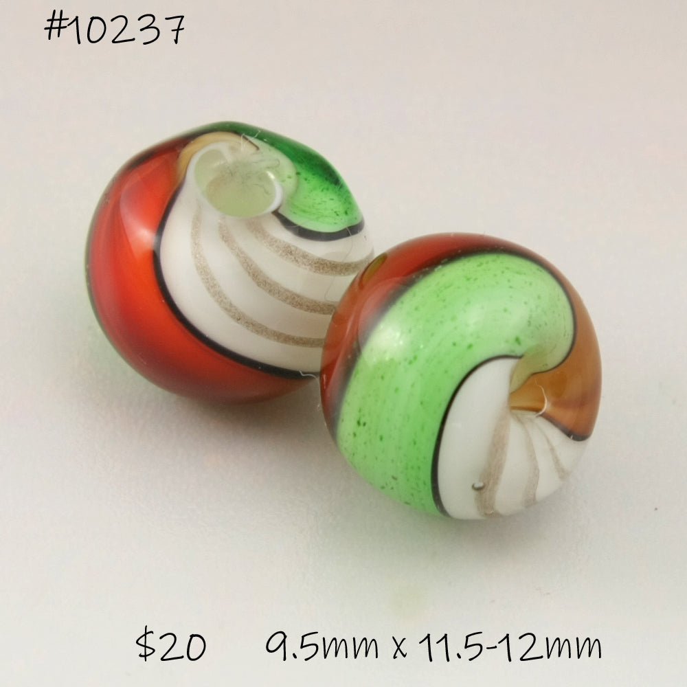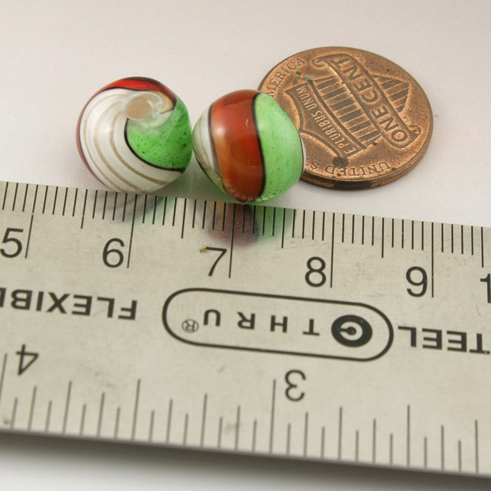 All my lampwork is annealed in a computer controlled kiln for strength and durability. Each piece is made one by one in the flame using glass from Italy, Germany, China and the US These are handmade so there might be a slight variance in size.