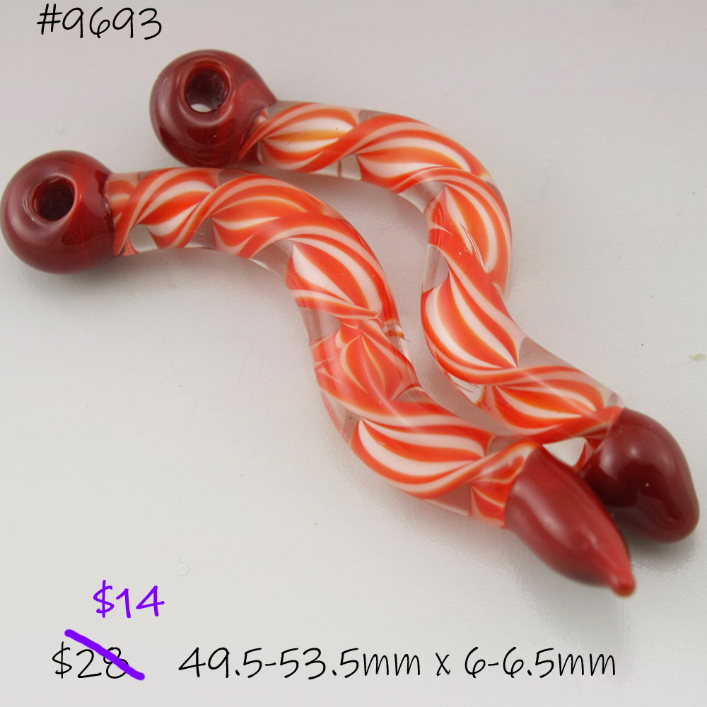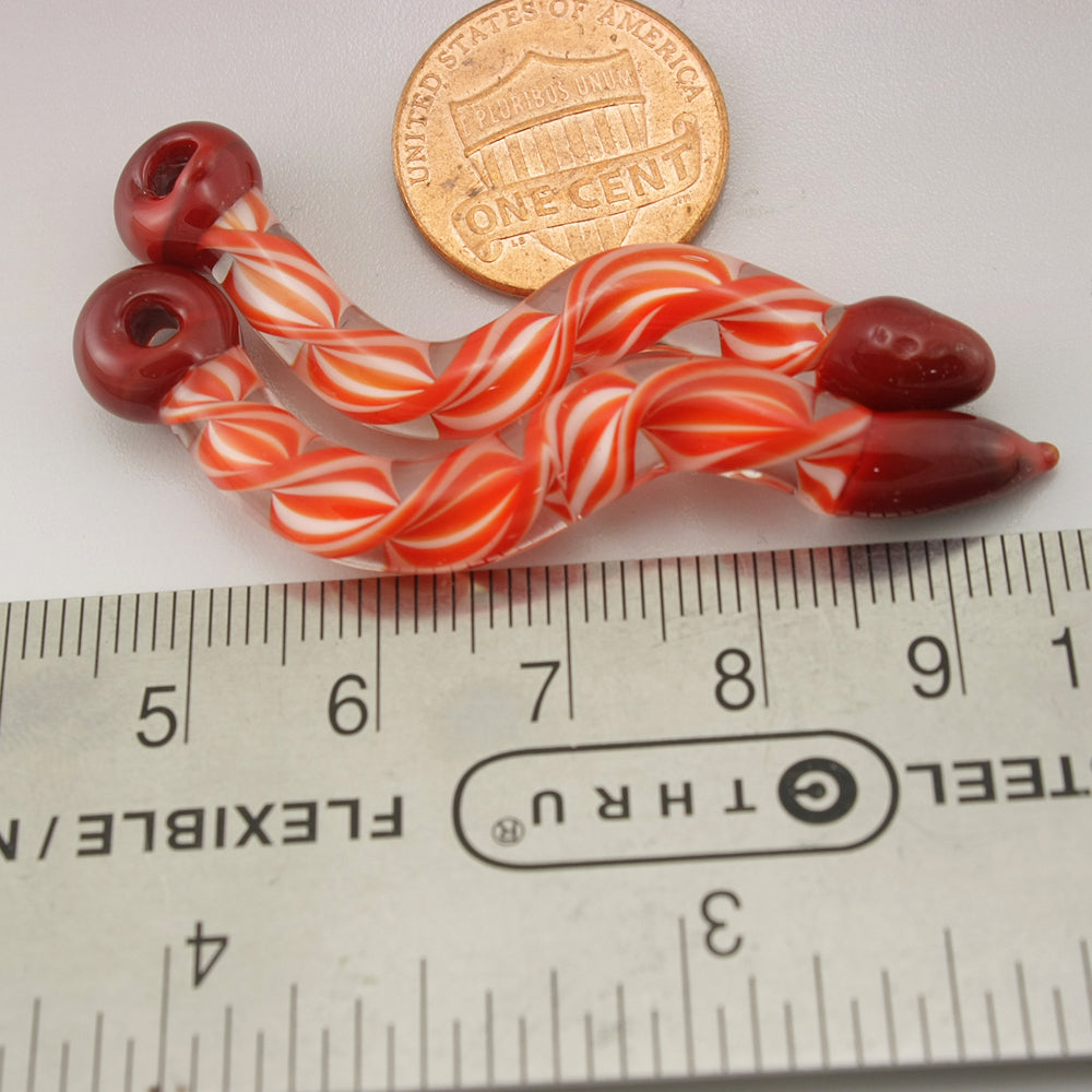 All my lampwork is annealed in a computer controlled kiln for strength and durability. Each piece is made one by one in the flame using glass from Italy, Germany, China and the US These are handmade so there might be a slight variance in size.
