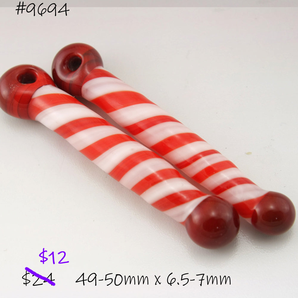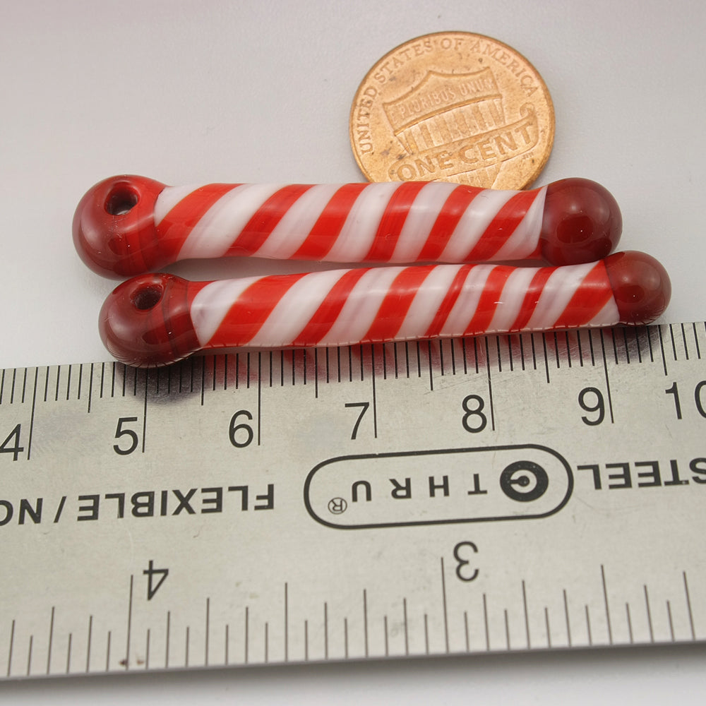 Handmade red and white twisty long straight drops with red caps