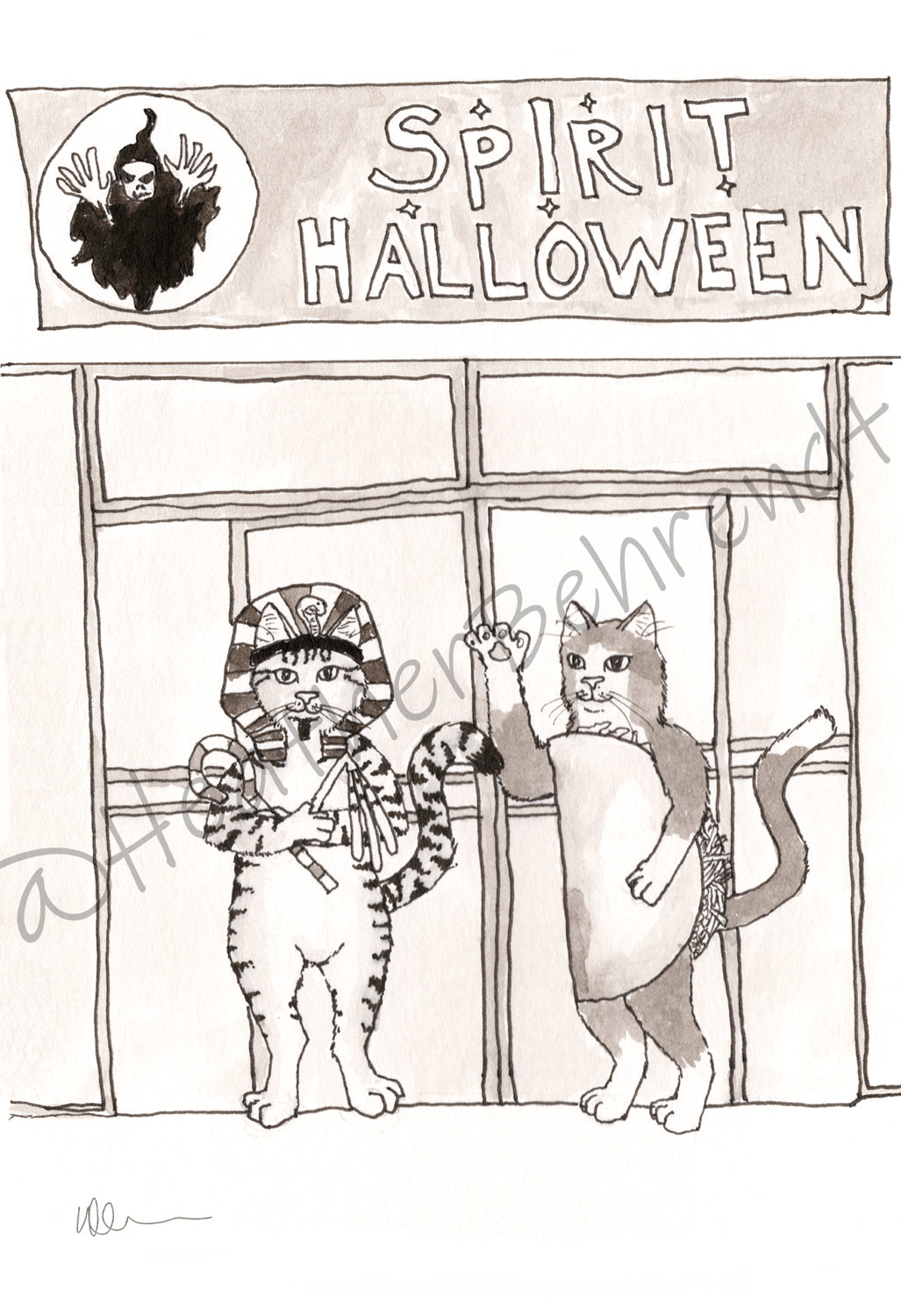 Original Ink drawings by Heather Behrendt inspired by the Inktober prompts of 2021