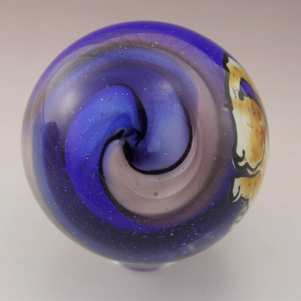 Swearing Kitty Marble on Sparkling Blue Purple