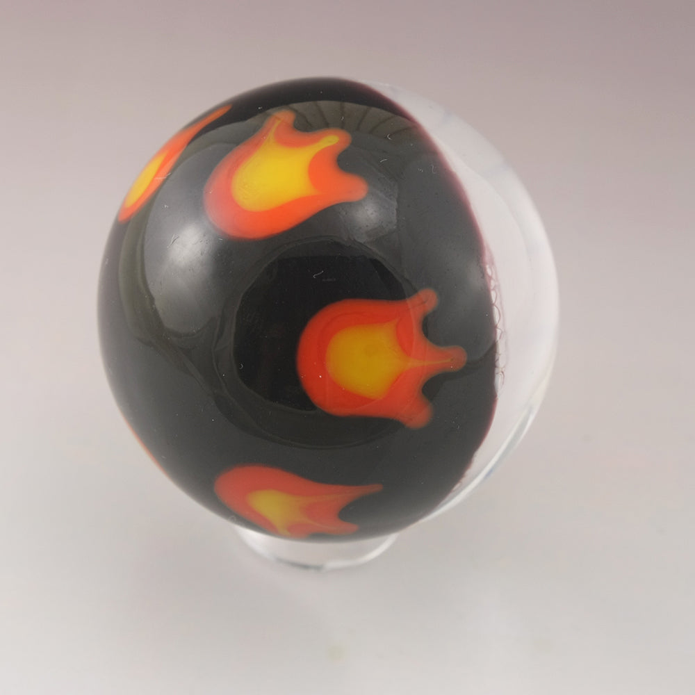 All my Marbles are annealed in a computer controlled kiln for strength and durability. These are handmade so there might be a slight variance in size. My marbles are all made in soft glass, so they are much softer and have less surface tension when melted than borosilicate. Because of the handmade nature, there can be some imperfections. I do get these as perfectly round as I can, but they are handmade.