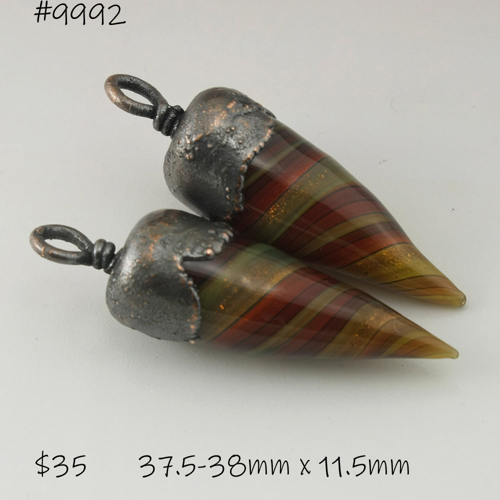 All my lampwork is annealed in a computer controlled kiln for strength and durability. Each piece is made one by one in the flame using glass from Italy, Germany, China and the US These are handmade so there might be a slight variance in size.
